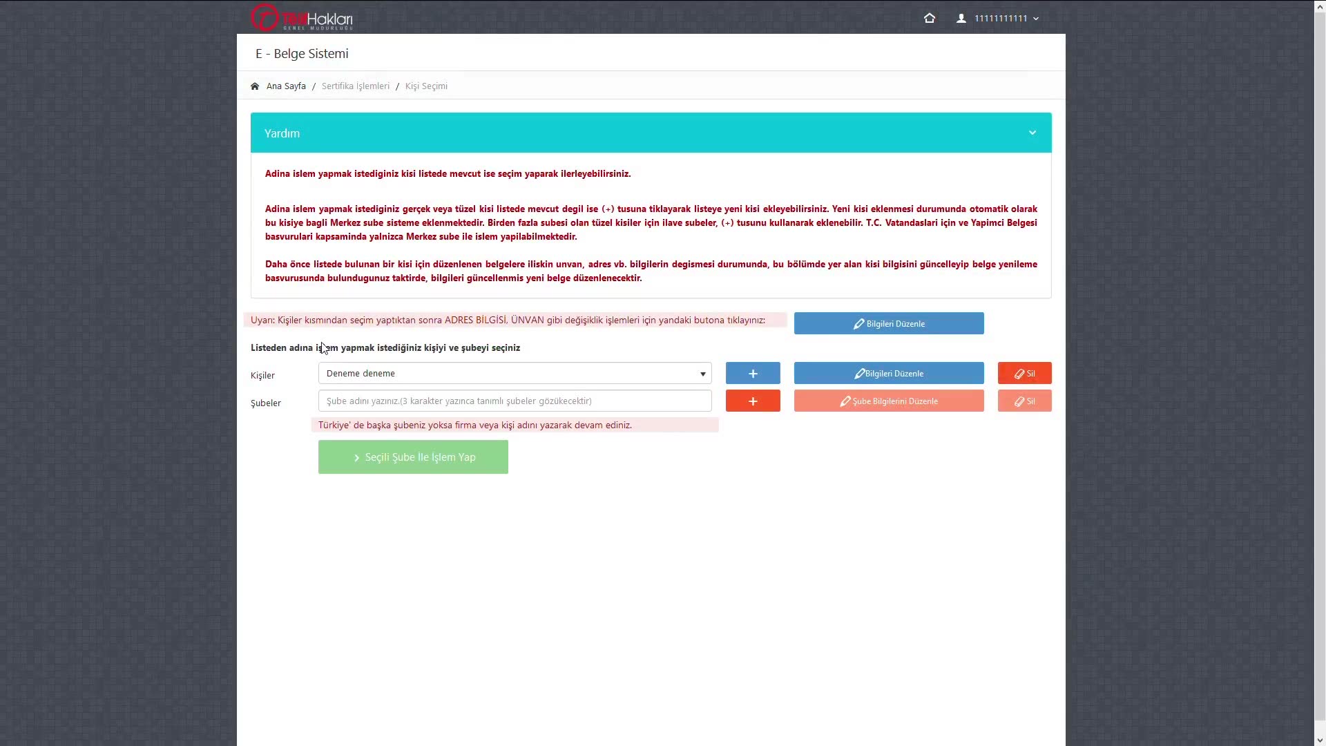 E-Belge Kişi Ekleme