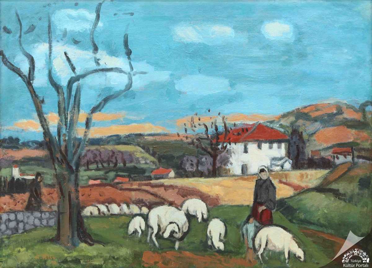 Sanatçı, Anadolu yaşamını sağlam, oylumlu ve geometrik biçimlerle resimledi. Anıtsal desen yapısına, renk kullanımında değerlerin doğruluğuna ve oranlarına önem verdi. Ayrıntıları ayıklayarak, arkaik karakterli, plastik biçimler oluşturdu.