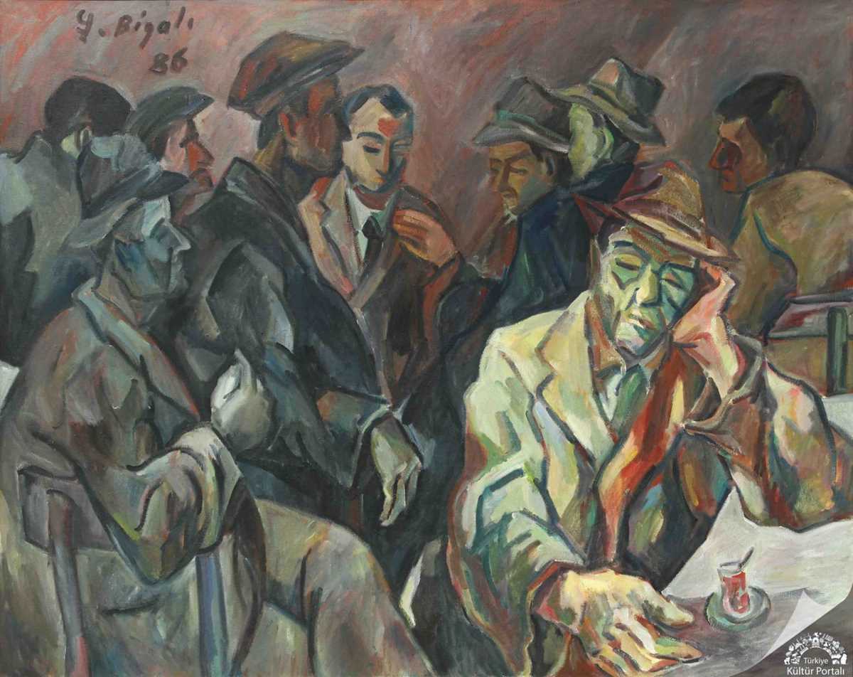 Sanatçı eserlerinde; Anadolu insanını, kahvehaneleri, sokakları, doğada dolaşan ve çalışan insanları kullandı. Doğduğu evi, çocukluğunun geçtiği mekânları resimlerine taşıdı. Döneminin sanat akımlarına uzak duran Bigalı, plastik yetkinliği önemseyen kendine özgü bir konu dağarcığı ve üslup benimsedi. Zaman zaman ekspresif fırça ve boya sürüşleriyle de dikkat çeken ressam, sanatını: “Benim sanat anlayışımda, her türlü fanteziden uzak, özentisiz bir sadelik vardır. Tuvallerimde ve diğer resimlerimde bütün zamanlar için yeni ve diri kalabilecek devamlılık arıyorum. İç varlığımın sesinde bunu hissediyorum.” sözleriyle dile getirdi.