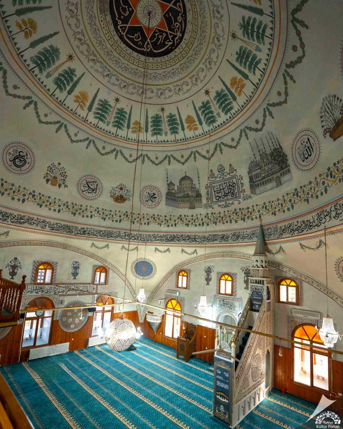 Balıkesir’in Burhaniye ilçesinde yer alan cami, 1895 yılında yaptırılmıştır. İç mekânındaki kalem işi duvar resimleri Anadolu’daki diğer örneklere benzemektedir. Caminin iç duvarlarını süsleyen bu resimlerde manzara ve tabiat tasvirleri ile beyaz güllerin ve akant yapraklarının ön plana çıkarıldığı bitkisel süslemeler göze çarpmaktadır. Ayrıca, hayali bir İstanbul panoramasını yansıtan kent tasviri, bacasından duman tüten bir un değirmeni ve köy mezarlığı betimlemesi gibi ögeler de duvarları süsleyen resimler arasında ilgi çekmektedir.
