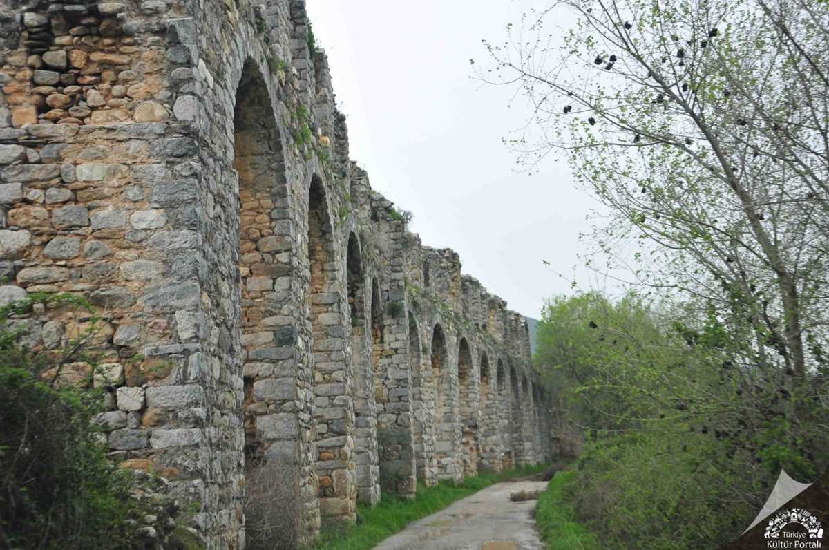 Milas’ın doğusundaki ovada uzanan su kemerleri erken Bizans dönemine aittir. Doğudaki yüksek dağlarda bulunan kaynaklardan şehre su getirmek için inşa edilmiştir. Arazinin konumuna göre kimi yerde tek katlı, ova tarafında ise iki katlıdır. Duvar örgüsünde, devşirme malzemeler kullanılmıştır.