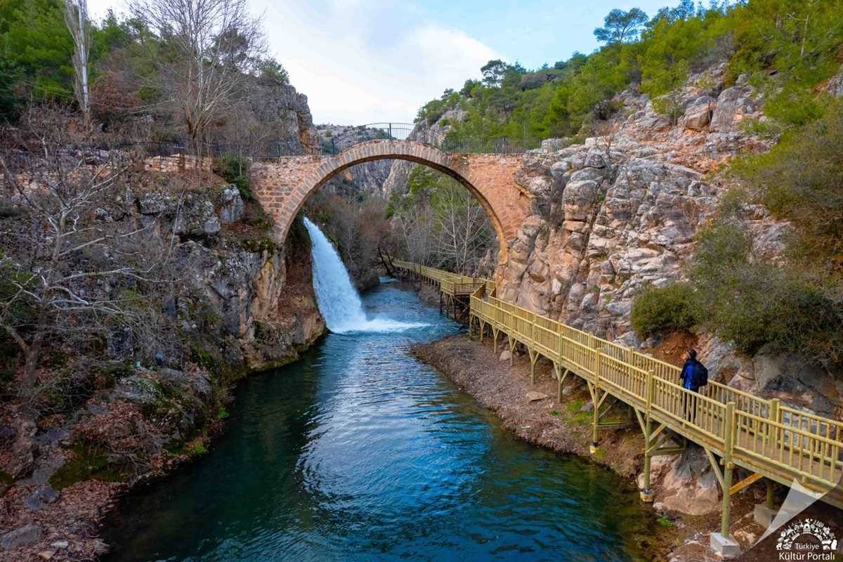 Roma dönemi mimarisinin izlerini taşıyan dar ve tek kemerli köprünün iki ucu, dağ kayalarının üzerine oturtulmuş olup uzunluğu 24 metre, yüksekliği ise 17 metredir. Clandras-Pepouza Antik Kenti ekoturizm alanında oluşturulan yürüyüş rotası üzerinde bulunan tarihi kemer ve çevresi, bölgedeki önemli mesire yerlerindendir.