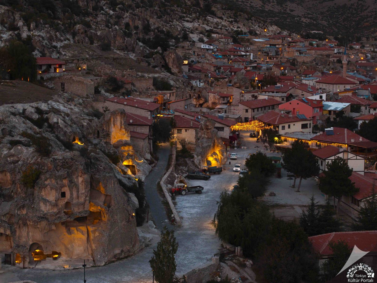 Frig Vadisi rotasının önemli bir etabını oluşturan ören yeri, kolay işlenebilme özelliğine sahip volkanik tüf kayalıklardan oluşmaktadır. Görkemli kaya anıtları, mezar odaları, kiliseleri ve doğal kaya yapılarıyla bilinen köyde eski ve yeni iskân alanları yan yana ve iç içe yaşamaktadır.