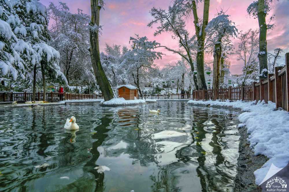 Ankara'nın sembollerinden olan Kuğulu Park, özellikle kış aylarında kar yağışı ile doyumsuz manzalar, muhteşem görüntüler vermektedir.