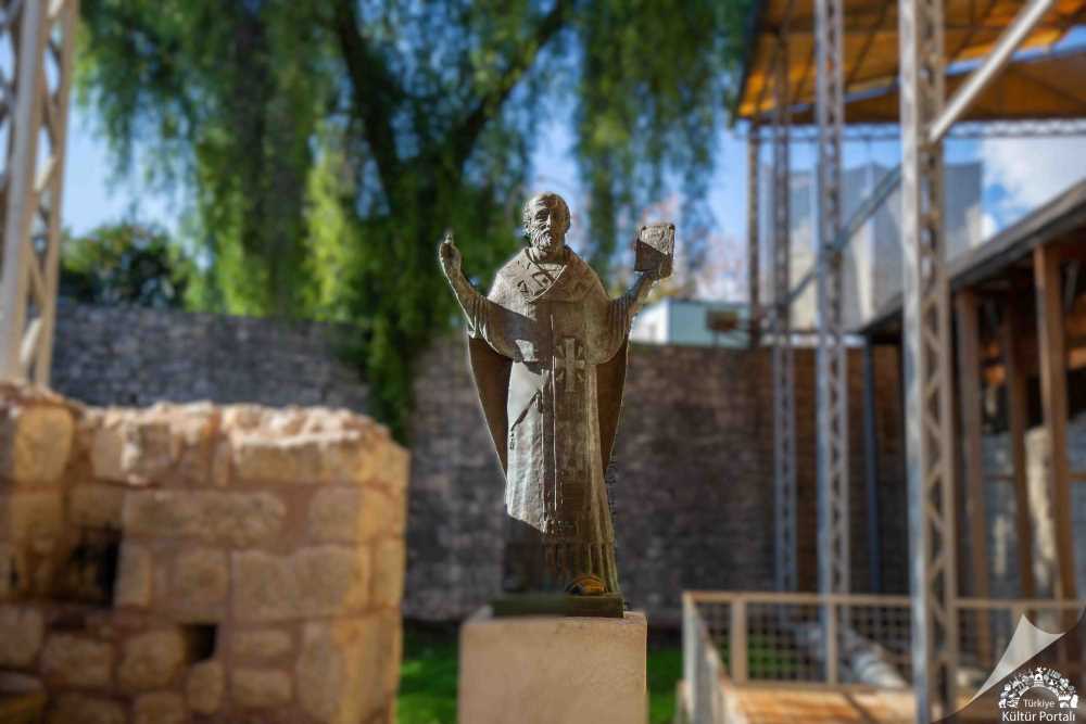 MS 3. yüzyılın ikinci yarısında Patara’da doğup Myra’da piskoposluk yapmış olan Aziz Nikolaos’ın saygın dini kişiliği, öldükten sonra aziz mertebesine ulaşmasını sağlamış, başta eski Rusya Çarlığı olmak üzere Avrupa’nın birçok ülkesinin en bilinen azizi olmuştur. Almanya’nın Freiburg, İtalya’nın Bari ve Napoli kentleri ile tüm Sicilya adasında özel saygı duyulan Aziz Nikolaos, Hollanda ve İngiliz dillerinde Santa Klaus olarak tanınmış; bunlar sayesinde Amerika’da da sevilerek New York’u koruyan azizlerden biri sayılmıştır. Avrupa’nın kuzey ülkelerinde çocukların koruyucusu ve sevindiricisi Noel Baba geleneği, Aziz Nikolaos inancıyla bütünleştirilerek yarı dini ve çok popüler efsanevi bir kişiliğin yaratılmasına sebep olmuştur. Geleneğin kökenini kuzey ülkelerinin çok eski inançlarından aldığı, Noel Baba’nın geyikler tarafından çekilen bir kızakla dolaşmasından anlaşılmaktadır. Hâlbuki gerçek Myralı Aziz Nikolaos’ın yaşadığı yerler hiç kar görmeyen Akdeniz kıyılarıdır. Aziz Nikolaos olarak özellikle Doğu Akdenizli gemiciler ona saygı göstermiş; küçük büyük bütün teknelere resmi veya ikonası asılmış; sefere çıkarken “Dümenini Aziz Nikolaos tutsun” dileği gelenek olmuştur.
