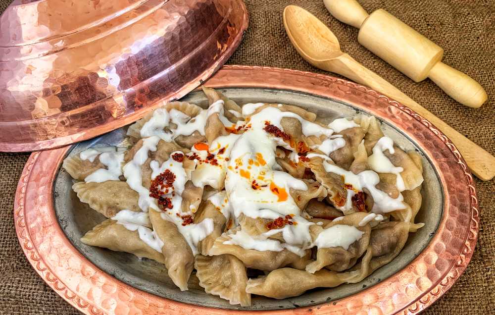 Haşlanıp soyulan patates küçük küçük doğranır. İnce kıyılmış soğan kızarıncaya kadar yağda kavrulur. Doğranmış maydanoz, patates, kırmızı biber, pul biber ve tuz eklenip karıştırılarak hazırlanan iç harç ocaktan alınıp soğutulur. Un yoğrularak mantı hamuru gibi sert hamur hazırlanıp 20 dakika dinlendirilir. Hamur yufka biçimi açılır ve su bardağı ağzı ile kesilir. Teker teker iç harç konup bohça şeklinde kapatılarak suda haşlanarak pişirilir. Sunum tabaklarında üzerine sarımsaklı yoğurt ve biberli tereyağı sosu dökülüp sunulur.