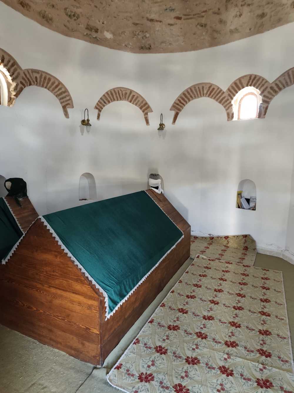 Köyün fazla sulak oluşu, Veli Dede'nin burada keramet göstererek asası ile su çıkarmasına atfedilmektedir. Velî Dede, türbenin içerisinde sol tarafta üstü yuvarlak bir mezar içinde yatmaktadır. Türbe sekiz köşelidir.