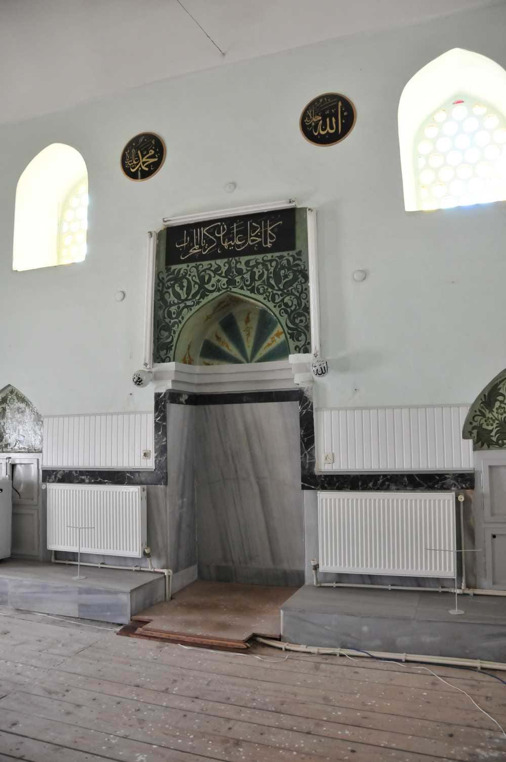 7.50 x 8,10 metre iç ölçülerinde olan caminin bütün duvarları moloz taşıyla örülmüş olup, tek kubbelidir. Son cemaat yerinin üstü ise ahşap sundurmalı ve kiremit kaplıdır. Sekizgen ve sağır bir kasnak üzerine oturtulan kubbe, kiremitle örtülmüştür. Mihrabı sade olup duvar içine gömülmüştür. Yapının doğu, batı ve kuzey duvarlarında yer alan ikişer alt pencere demir parmaklıklı, sivri kemerlidir. Güney duvarındaki alt pencereler örülerek dolap haline gelmiştir. Üst pencereler, kuzey duvarı dışında ikişer adet sivri kemerli olup, kubbe kasnağında pencere yoktur. 1940’lı yıllarda bir şahsa satılan cami, depo ve ev olarak 1950’ye kadar kullanılmıştır. 1950’den sonra Recep Kıryaoğlu ismindeki bir şahıs tarafından satın alınarak, 1953 yılında yeniden tamir ettirilip ibadete açılmıştır. Minaresi 1940’larda cami şahsa satılınca yıkılmış 1950’den sonra yeniden yapılmıştır. |