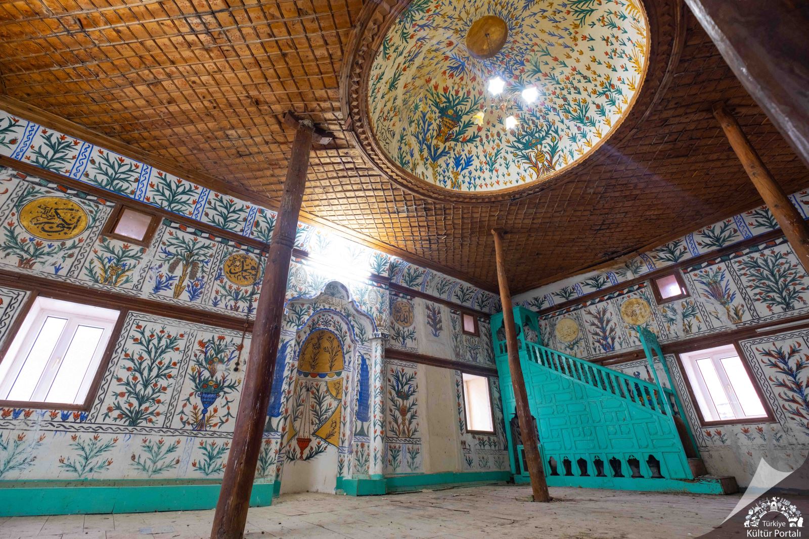 Mihrabın içi çiçek ve kandil motifi ile süslenmiştir. Harimin tavanında, minberinde, kapısında ve mahfilinde zengin oyma ahşap işçiliği görülmektedir.