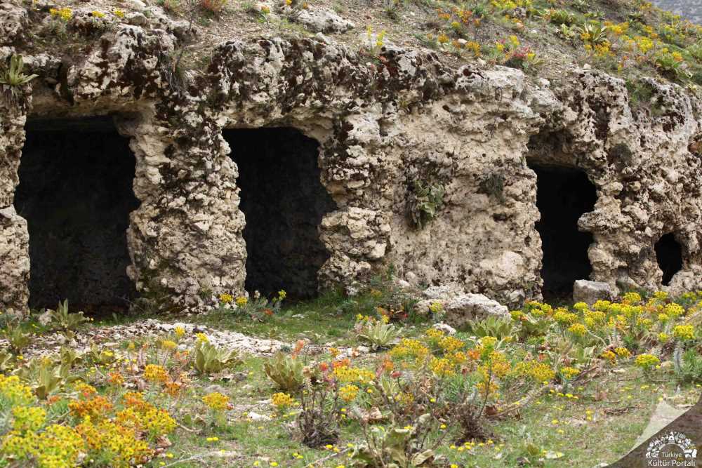 Kayaya Oyulmuş Nişli Bina: Akropolün kuzey doğusundadır. Bina kuzey-güney doğrultusunda yapılmış olup, plan bakımından dikdörtgen şeklindedir. Duvarın doğu kanadının iç kısmında kayaya oyularak yapılan dört adet niş bulunmaktadır. Duvarın batı tarafında ise nişlere rastlanmamaktadır. Binanın çevresinde ve içinde arşitrav parçası, sunak ve sütun bulunmaktadır. Roma dönemine tarihlendirilen bina, Selçuklu ve Osmanlı dönemlerinde de kullanılmıştır.
