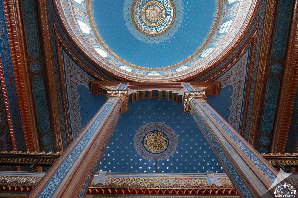 Caminin mimarisinde Oryantalist ve Neo-gotik üslûbun bir karması gözlemlenir. Kubbe kasnağına Neo-gotik tarzda açılan on altı pencere ile cami bol ışık almaktadır. Çokgen bir yapıya sahip olan kubbe kasnağının kornişi bir mukarnas dizisiyle biçimlendirilmiş, kubbe içi ve mihrap önündeki tavan lâcivert zemin üzerine işlenmiş yıldızlarla bezenmiştir. Kolonlar, taşıyıcı işlevlerinin yanı sıra iç mekâna dekoratif bir zenginlik katmakta ve dönemin yaygın mimari üslûbu olan Batı anlayışını yansıtmaktadır. Camide özellikle iç süslemeler dikkat çekici güzelliktedir. Her bölümü nakış gibi işlenen camide, sadece kubbede değil tavanın geriye kalan kısımlarında ve duvarlarda altın varak sıkça kullanılan bir süsleme malzemesi olmuştur. Kalem işleri, mukarnaslar ve yazı şeritler de caminin tezyinatına renk katan unsurlardır.