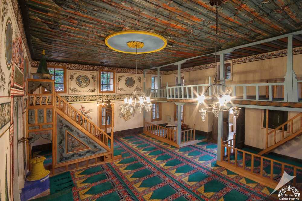 Caminin son cemaat yerindeki tavanın ahşap işçiliği dikkati çekicidir. Tavanın çökertilmiş̧ orta kısmında içleri çiçeklerle bezeli çıtalarla oluşturulmuş̧ üçgen ve dörtgen bölümler ve merkezindeki sarkıt, bu dönemin camilerinde ve sıklıkla evlerinde karşılaşılan tavan süslemeleriyle benzer özellikler taşımaktadır.