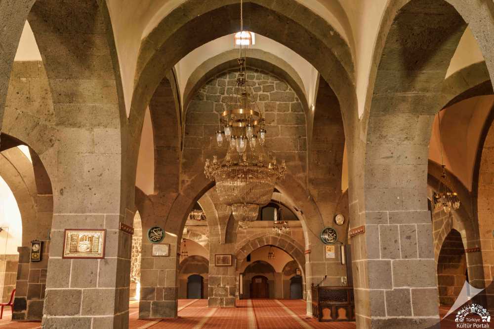 Caminin avlu mekanı doğu ve batı yönlerinde değişik açıklıktaki üç kemer ve dörder ayakla sınırlandırılmış olup, üstü yine giriş bölümünde olduğu gibi çift merkezli beşik tonoz ile örtülüdür. Bu tonozun orta kısmında 3,80x5,80 metre ölçüsünde dikdörtgen bir açıklık vardır. İlk hali Selçuklu mimarisinde görülen ve cami ortasında bir açıklık (ışıklık) olduğu tespit edilmiştir. Bu açıklık sonradan doğu ve batı yönlerine yapılan ek kemerlerle kareye dönüştürülmüş ve buraya 3,60 metre çapında bir kubbe yapılmıştır.