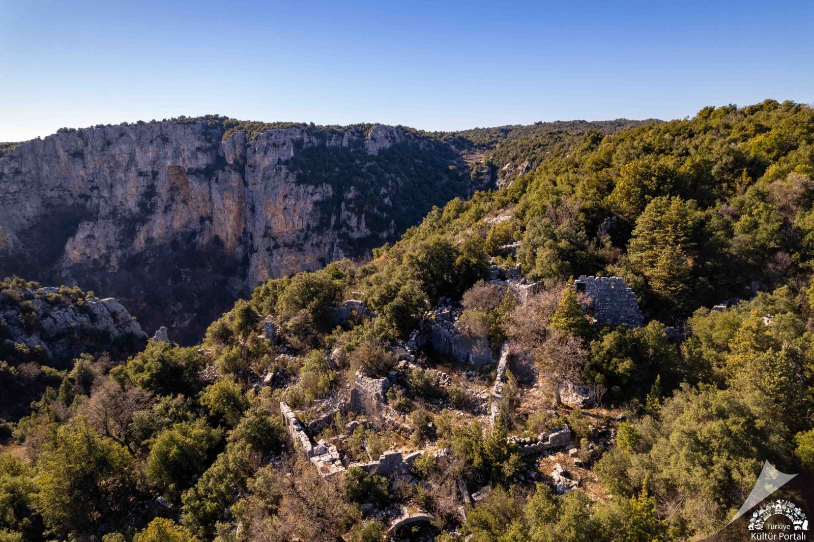 Ören yeri, çalılıkların ve ağaçların altında kaldığından zor gezilebilmektedir. Yamacın bir kısmında sık aralıklarla evler dizilidir. Ören yerinde bulunan kabartmalar arasında iki asker, oturan bir kadın ve bir erkek (rahip ve rahibe) bulunmaktadır. Yine Roma dönemine ait mezar yapılarına rastlamak mümkündür. Nekropol alanı güney yamaçtadır. Lahitler ve mezar odaları, bu nekropol alanı içerisinde yer alan mezar tipleridir.