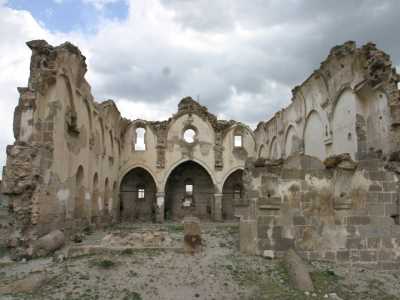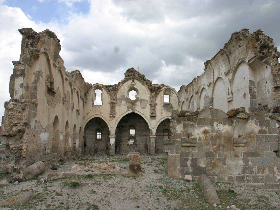Doğu-batı yönlü, boyuna dikdörtgen planlı üç nefli kilisenin ortasındaki nefi daha geniş ve yüksektir. Yan nefler ise orta nefe nazaran daha dardır.Apsis nişleri arasında demir gergi çubukları yer alır. Kilisenin yan cephesinde dörder adet dıştın içe doğru genişleyen mazgal pencere bulunmaktadır. İç mekan sıvalı olup, sıvalar dökülmüştür. Kilisenin apsisleri dışa doğru çıkma yapmış olup, orta apsis daha yüksek ve çıkması köşelidir. Kilise oldukça harap vaziyette olup, giriş cephesi ile çatı örtüsü tamamı ile çökmüştür. Orta sütunların hiç birisi ayakta değildir. |
