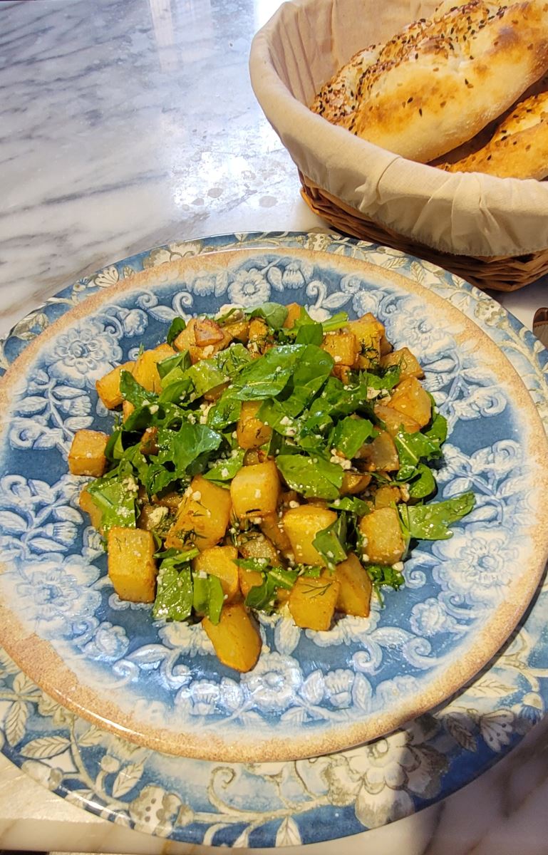 Patatesler soyulup küp küp doğranıp tuzu eklenmiş suda haşlanır. Roka ve kuzukulağı yıkanıp ince ince doğranır. Yeşillikler patatesin üzerine eklenir. Niğde mavisi peyniri ufalanarak karışıma ilave edilir. Zeytinyağı ve tuz ekleyip ılık ve ya soğuk olarak servis edilir.