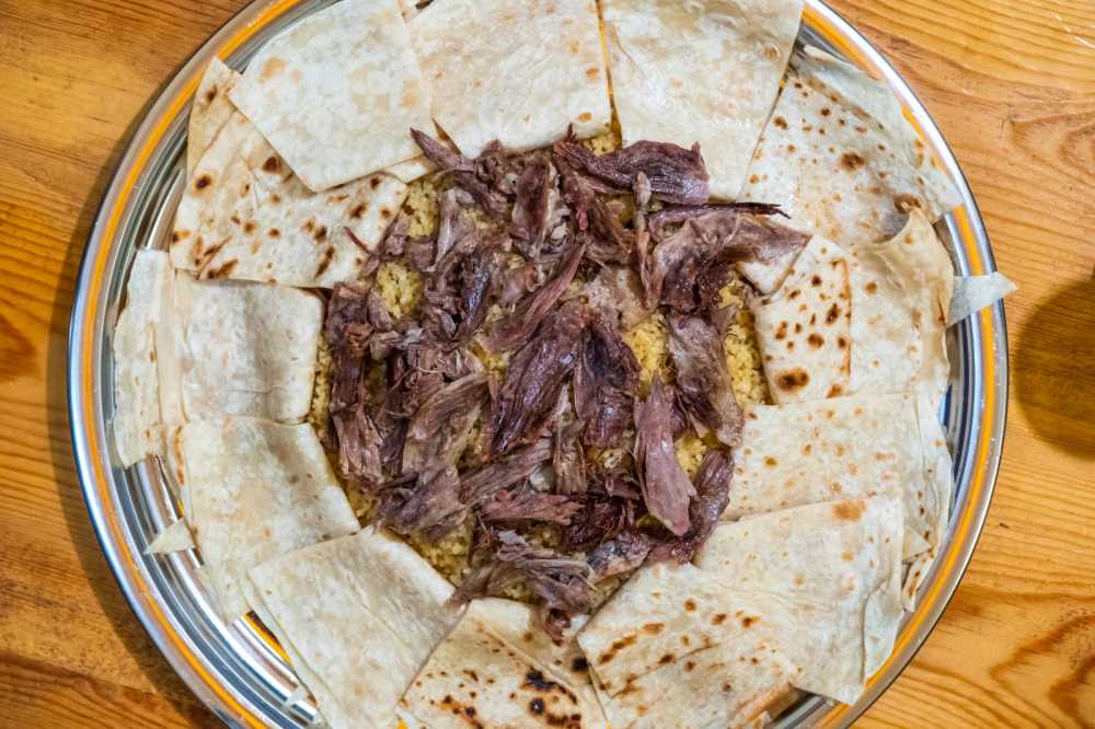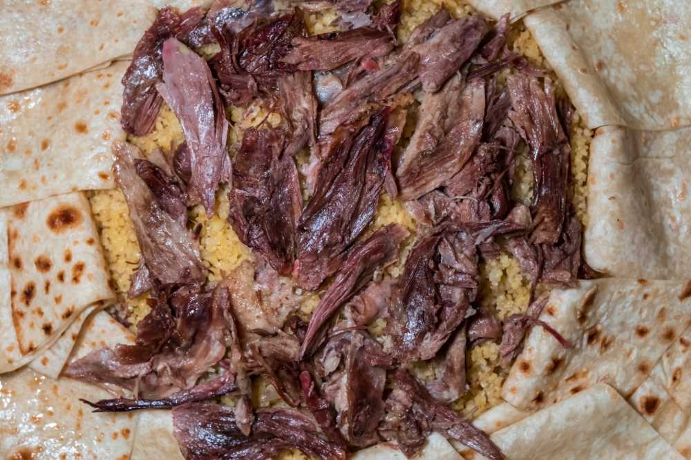 Temizlenen kazın deri ve bağırsak civarındaki yağları küçük küçük doğranarak bir kapta eritilir. Bütün olarak haşlanmış kazın suyundan iki kepçe su ve tuz konur. Yufkalar dilim dilim kesilerek yağlı suya batırılıp bir tepsiye dizilir. Kaz suyu ile pişen bulgur pilavı tepsiye dökülür. Üzerine eritilmiş kaz yağından gezdirilir. Kaz eti parçalara ayrılarak pilavın üzerine konur. Yağlanmış yufka ile yenilir.
