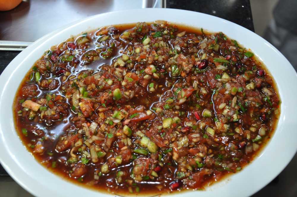 Domateslerin kabukları soyularak küçük küçük doğranır. Damarları ve tohumları ayıklanan biber, yeşil soğan, maydanoz, nane ve semizotu ince ince kıyılır. Tuz ilavesiyle iyice karıştırılır, ekşisi konularak kâselere doldurulur. Malzemesi ne kadar ince kıyılırsa o kadar makbuldür. Ekşisi, yaz başında koruk suyu, sonbaharda taze nar suyu, diğer mevsimlerde nar pekmezidir. Limon tuzu ve şeker karışımı, diğerlerinden mahrumiyet halinde kullanılabilir.