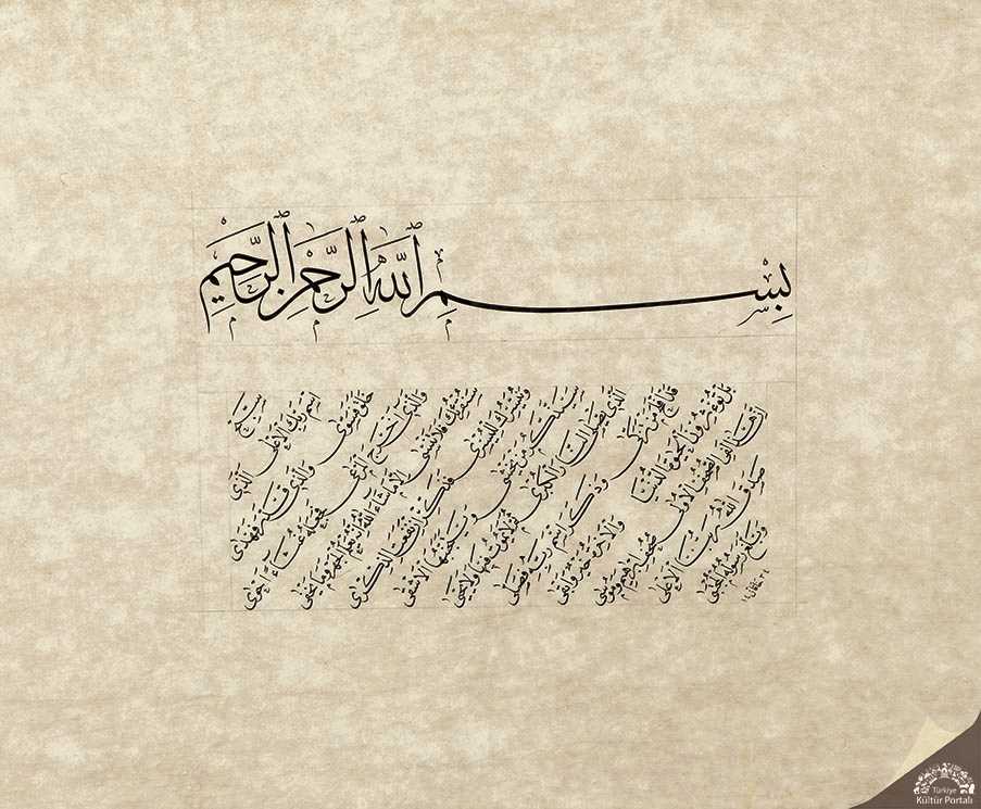 17.Devlet Türk Süsleme Sanatları Yarışması (2013). Hüsn-i Hat Yarışması Sergileme 2013. Sülüs-Nesih. 44 x 54 cm.