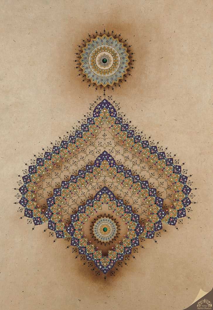 18.Devlet Türk Süsleme Sanatları Yarışması (2015). Tezhip Yarışması Sergilemeler 2015. Klasik (16 yy), 75 x 98 cm