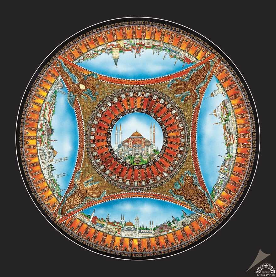 18.Devlet Türk Süsleme Sanatları Yarışması (2015). Minyatür Yarışması Başarı Ödülü 2015. Noktalama, Tarama, Altın, Kontür, Akrilik, Taşboya, Guaj, 85 cm Çap