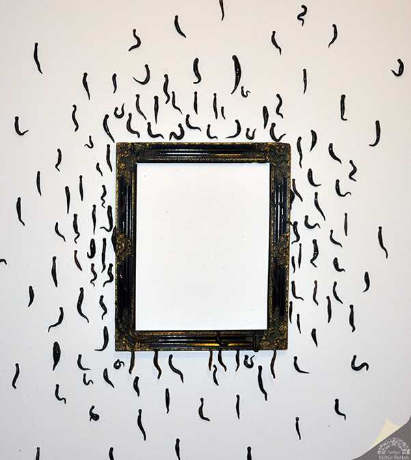 Bununla Yaşamaya Alışmak Zorundasın.Siz insan olarak bizimle yaşamayı kabul edebilirsiniz fakat biz sülük olarak sizinle yaşamayı kabul etmiyoruz… Sözcü Sülük Teknik: Seramik kili üzerine yağlı boya, vernik, çerçeve.Yılı:2015Ölçü: 200 cm x 160 cm, 112 parça