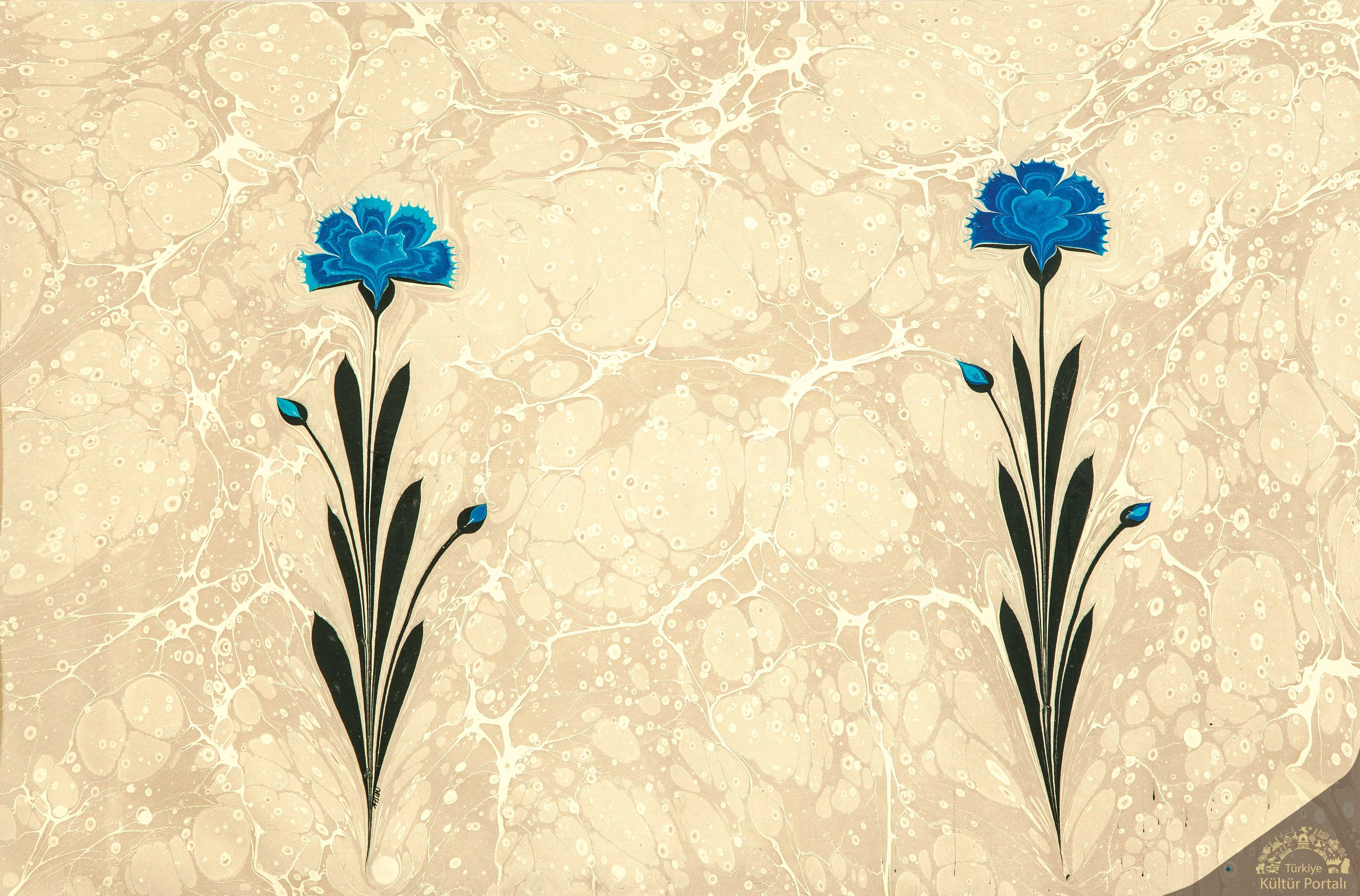 Karanfil / Çiçekli Ebru / 35x50 cm