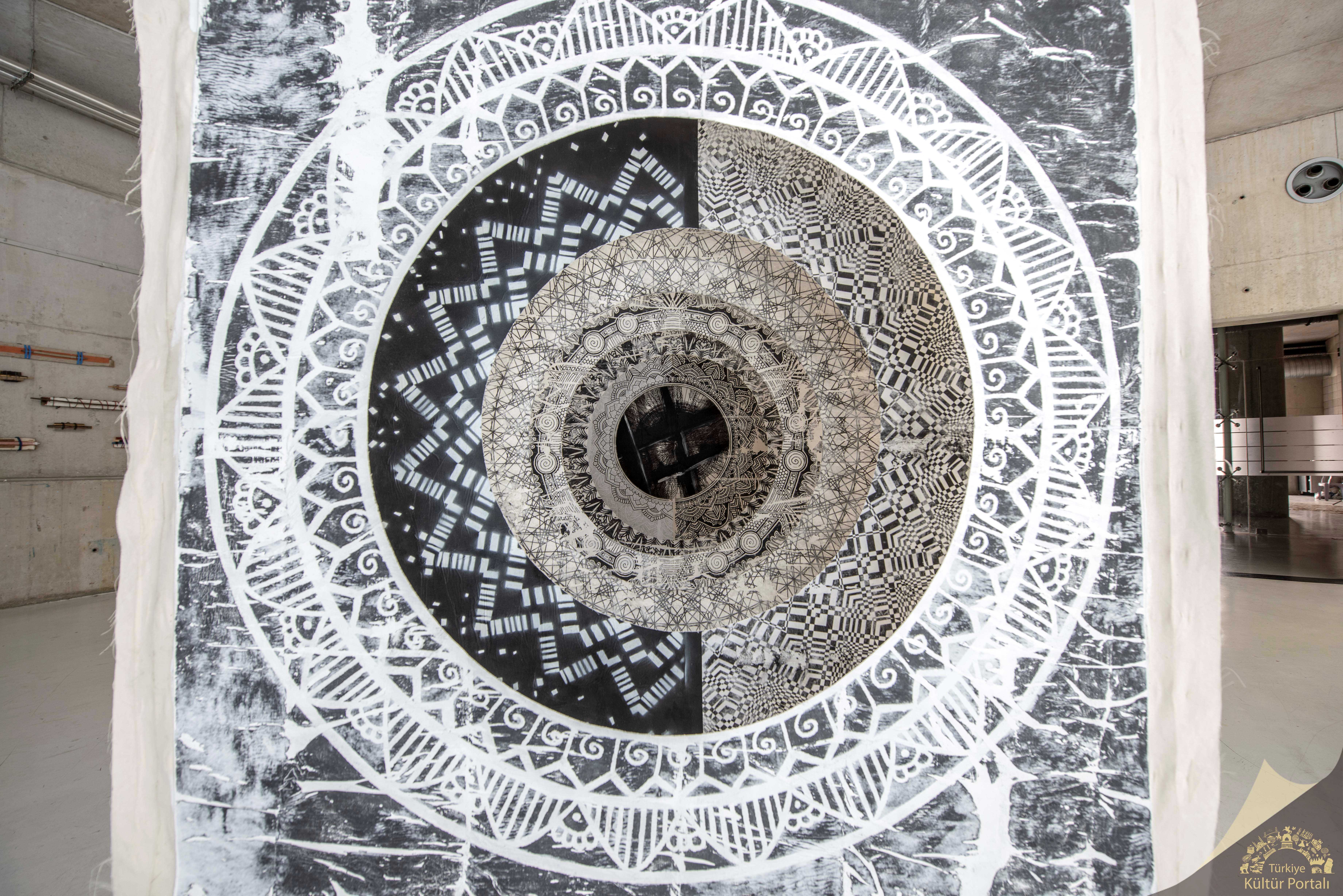 Uğur BİŞİRİCİ (Karaman, 1992) Gazi Üniversitesi / Güzel Sanatlar FakültesiGazi University / Faculty of Fine ArtsBOŞLUK / VOIDTuval Üzerine Karışık TeknikMixed Technique on Canvas220x220 cm, 2017Resim, mekân, yüzey, algı gibi kavramları tekrar aklımıza getiren bu çalışma, şaselerinden sökülmüş halde bulunan tuvallerden oluşmaktadır. Çalışma kendi sınırlarıyla kendi mekânını yaratmakta ve kendi mekânına yeni bir kapı açmakta.This work, which reminds us consepts such as painting, place, surface, perception, are created by canvasas that were unraveled from its plates. The work creates its own place by its own boundaries and opens a new door to its place.