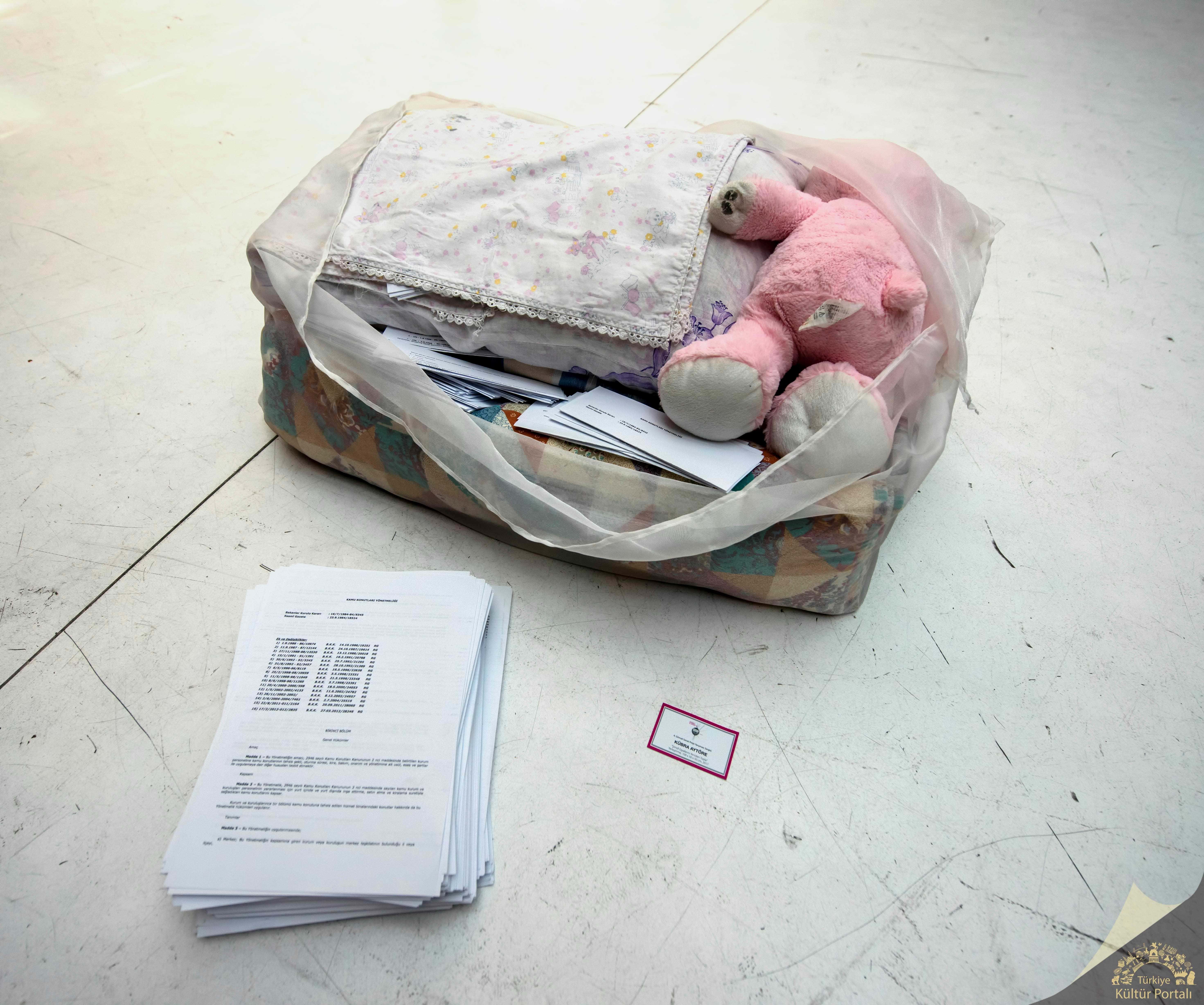 Kübra AYTÖRE (Yenimahalle, 1995)Gazi Üniversitesi / Güzel Sanatlar EnstitüsüGazi University / Institute of Fine ArtsŞİMDİ EŞYALARINI YENİDEN TOPLA / NOW PACK YOUR STAFF AGAINYerleştirmePlacement100x50x50 cm, 2017Bir yere yerleşmek oraya ait olmak mıdır? Kendimizi özgür hissetmek bir odada tüm benliğimizle var olmak mı yoksa bir yere bağlı kalmamak mıdır? Belki de belli bir yaşa gelene kadar bir odayı benimsemek, özgürlüğü orada yaşamak eğilimindeyizdir. “Her ‘özne’ kendini tanıdığı ya da yitirdiği, dolayısıyla yararlandığı ya da değiştirdiği bir mekânın içine yerleşir” der Lefebvre. Ama tam da yerleştim derken gitme vakti gelirse? Tüm eşyalarımızla beraber anılarımızı da alıp gitme vakti. -Özel olması gerekirken her şeyiyle ortada olan bir hurç.Does settling anywhere mean to belong there? Feeling ourselves free is existing in a room with all our selfness or not helding to anywhere? Maybe we are tend to adopting a room and feeling the freedom in there until a certain age. But if it is time to go when we say exactly settle? It is time to go along taking all the stuff with all our memories. -On apperent a saddla bag when it should have been special.
