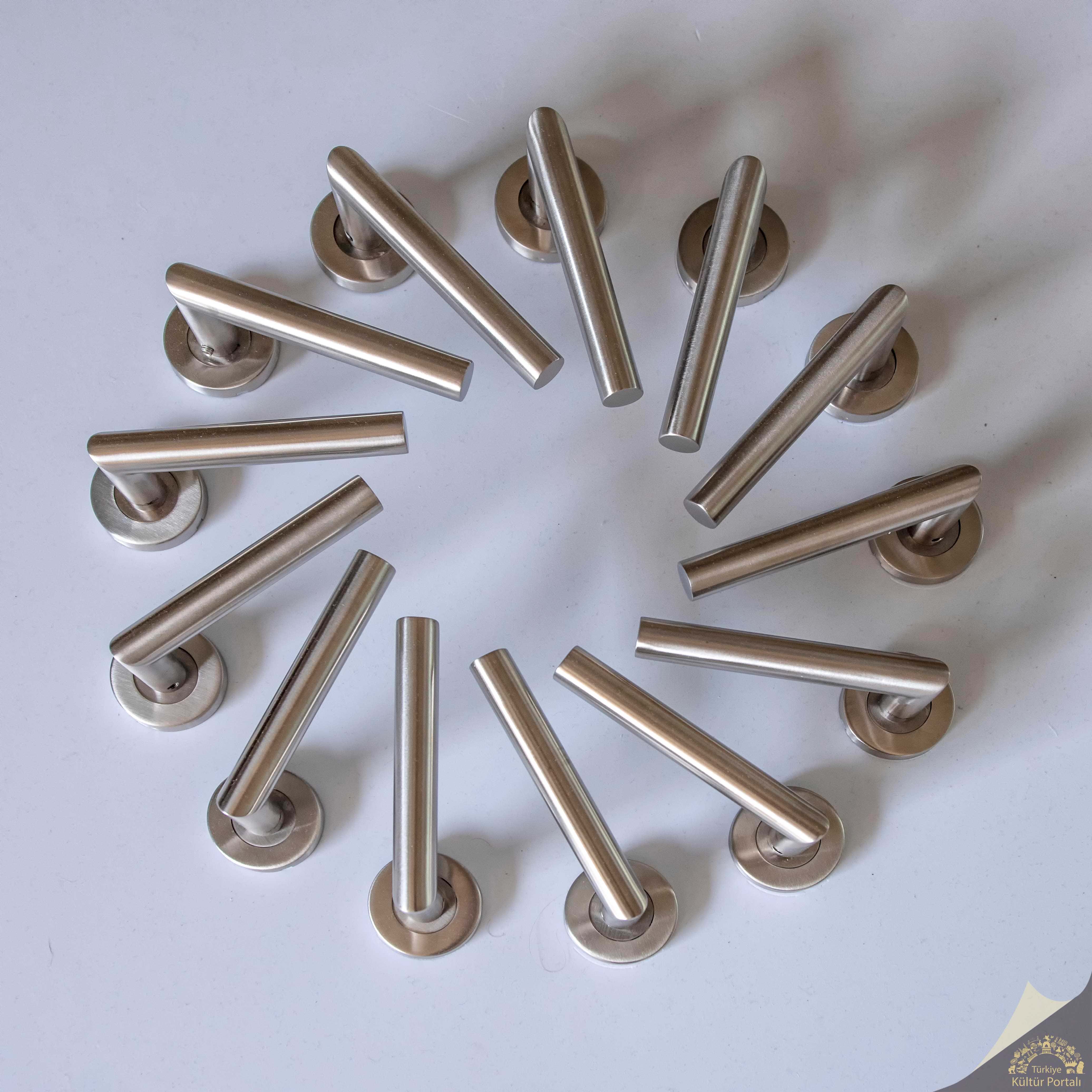Onur KURAN (Denizli, 1985)Anadolu Üniversitesi / Güzel Sanatlar EnstitüsüAnadolu University / Institute of Fine ArtsBÜYÜK DÖNGÜ VE BİZ / GREAT LOOP AND USYerleştirme, Çelik Kapı KoluPlacement, Steel Door Handle42x42x7 cm, 2018Montaigne; “Bir kapının kapalı olduğunu anlamak için, o kapıyı itmek gerekir” demiştir. Yaşamımız, yaptıklarımız, anılarımız... Kısacası hayata dair herşey küçük adımlarla, birbiri ardına takip eden bir yaşam örüntüsü ile başlar ve devam eder. İnsan kendisini her zaman çevresindeki sonsuz gerçekliğin bir parçası olarak görür ve bu gerçeklikle boğuşur. Döngüler içerisinde akıp giden bu mükemmel sistemin içindeki kurguyu yakalamak bazen tek bir hamle ile gerçekleşir... Edward N. Lorenz tarafından öne sürülen teoriye göre; “Afrika’da kanat çırpan bir kelebek, Amerika’da fırtına yaratır”. Herşey birbirini etkileyen bir döngü içerisindedir. Tek bir kapıyı aralayabilmek için yapılan bir hamle, aslındao kapının ardındaki kapıları açabilmek için yegane adımdır. Sadece herşeyin bir sırası ve zamanı vardır. Biraz kuvvet uygularsan kapı açılmaya başlar ve tekrar kapanır. Arasındaki ilişkiyi yakalayabilirsen tüm döngünün kuralını da bulabilirsin...“To understand that a door is closed, you need to push that door” said Montaigne. Our lives, what we did, our memories… In brief, everything about life starts with little steps and a life pattern that follows one after another and continues. People sees himself/herself as a part of the eternal reality around him/her and struggles with this reality. To catch this fiction inside of this perfect system that flows in cycles sometimes occur with only one move… According to the theory suggested by Edward N. Lorenz; “A butterfly flapping its wings in Africa, creates a storm in America”. Everything is in a cycle affecting each other. A move made to be able to open a single door slightly is actually the unique move to be able to open the doors behind that door. There is a turn and time for everything. If you use some force, the doors starts to open and closes again. If you catch the connection between them, you can find the rule of the whole cycle…
