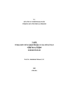 T.C. KÜLTÜR VE TURİZM BAKANLIĞI TÜRKİYE KÜLTÜR PORTALI PROJESİ TARİH TÜRKLERİN MÜSLÜMAN OLUŞU VE İLK MÜSLÜMAN TÜRK DEVLETLERİ KARAHANLILAR Prof. Dr. Abdulhaluk Mehmet ÇAY 2009 ANKARA