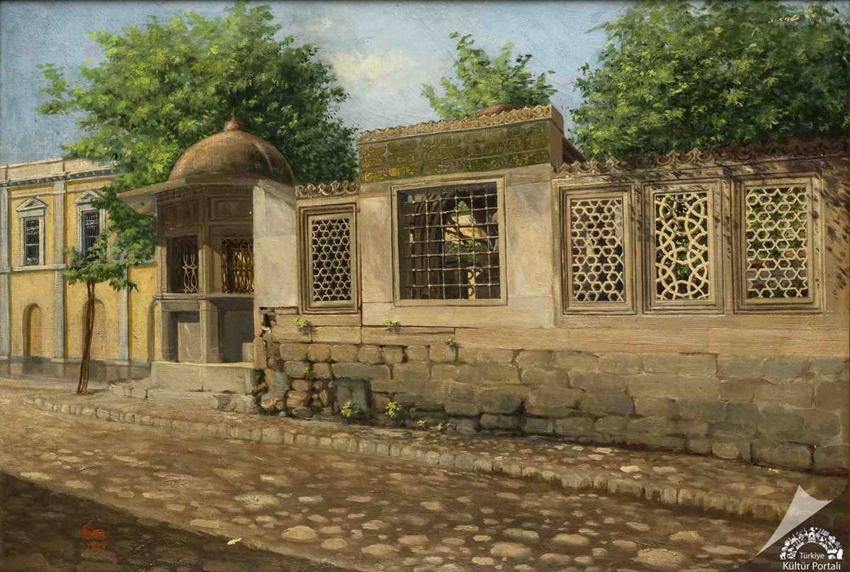 Ahmed Ziya Akbulut, Sanayi-i Nefise Mektebi mezunu olmasına karşın mezuniyeti için yaptığı Lehimci Yahudi ve Yaşlı Adam gibi birkaç figürlü resmi dışında konu seçimi ve üslup açısından Asker Ressamlar Okulu’na yakın bir anlayışı benimsemiş; fotoğrafik ve ayrıntıcı bir fırça ile perspektifi önemsemiştir. Konu olarak seçtiği Mimar Sinan Türbesi de II. Abdülhamid Döneminde Avrupa karşısında sürdürülen Osmanlıcılık/İslamcılık ideolojisinin resimsel yansımasıdır. Osmanlı/İslam mimarisinin fotoğraflarla belgelendiği bu dönemde, asker ressamların çoğu uygar, gelişmiş bir Osmanlı yaratma ülküsüne bağlanmışlar; bu kimliğin oluşumuna katkı sağlayan saray, köşk, kasır, cami, türbe, çeşme gibi sivil ve dini mimari, eski eserler ve İstanbul’un güzellikleri başta olmak üzere manzaralar resmetmişlerdir.