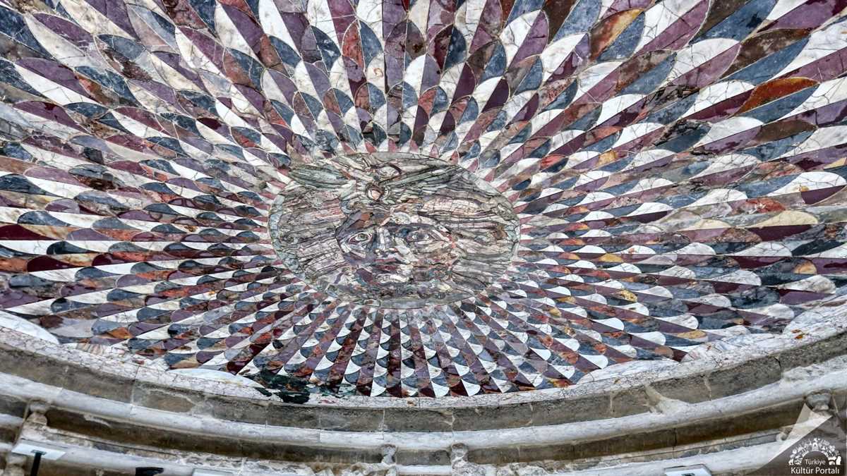 Meclis binası orkestranın tam merkezinde bulunan kırmızı, yeşil ve beyaz mermerden yapılmış, yılanlardan oluşan saçları ve insanları taşa çeviren bakışlarıyla ünlü Medusa mozaiği Anadolu’da tektir.