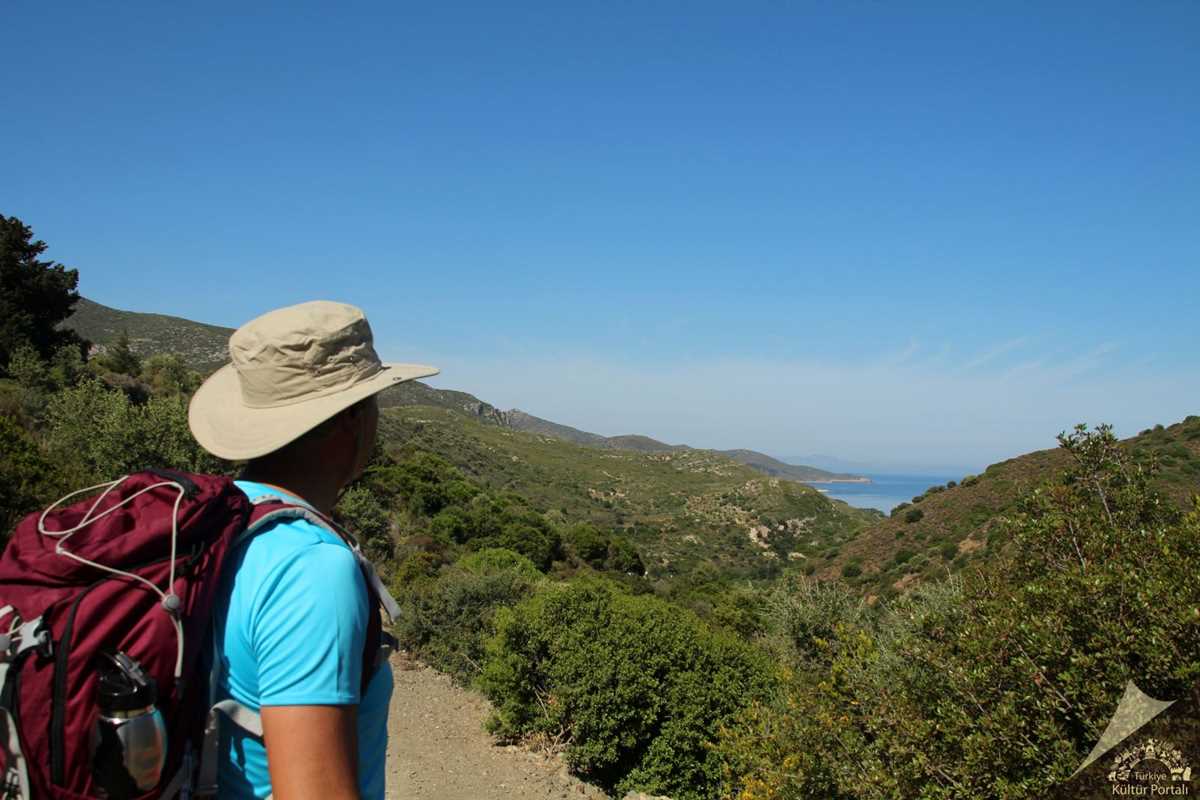 İkinci gün aracımızla yürüyüş yapacağımız rotanın başlangıç noktasına transferimiz yapılıyor. Bugün, yaklaşık 16 kilometrelik Domuzçukuru koyu ve sonrasında Kargı koyunda bitecek olan yürüyüşümüz başlıyor. Bu defa karaçam ağaçlarının arasında yürüyoruz. Zaman zaman orman içi yollardan, zaman zaman da patika yollardan ilerliyoruz. Sık ağaçlıklardan geçiyor olsak da işaretlemeler son derece iyi. İnsanın tek başına dahi rahatlıkla yapabileceği bir rota.