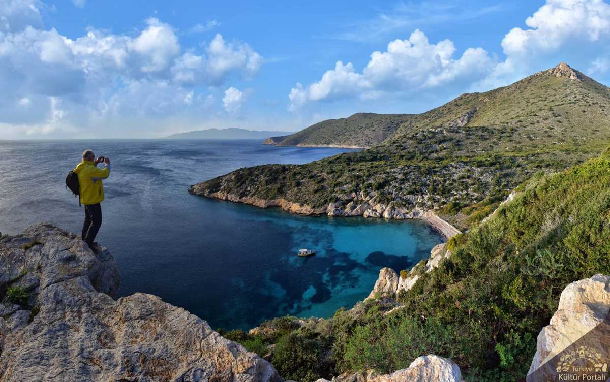 Yaklaşık yedi kilometrelik yürüyüşümüzün sonunda Değirmenbükü koyuna ulaşıyoruz. Deniz masmavi bir çarşaf gibi karşımızda. Yarımadanın Ege’ye bakan koylarından biri. Hem denize girecek hem de öğle yemeği molamızı burada vereceğiz. Tabii ki, önceliği denize vermek üzere, Ege’nin serin sularına bırakıyoruz kendimizi.