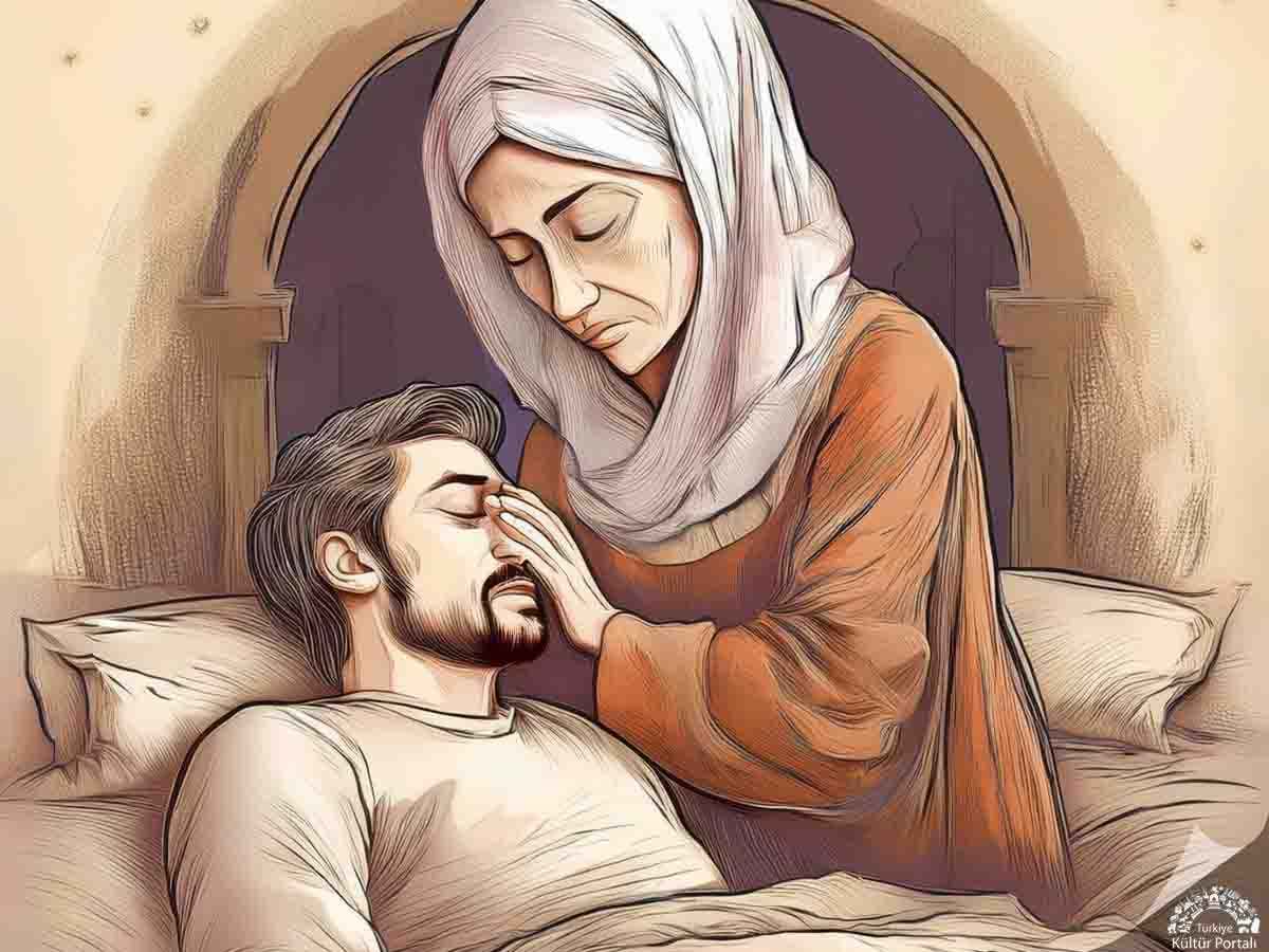 Oğlan ekmeği yedikten sonra vücuduna bir fenalık gelmiş. Kendisini eve zor atmış. Eve gelince “sırı dikme” gitmiş. Anası “Ne oldu oğlum, sana ne oldu?” diye dövünmeye başlamış. Oğlan: “Çok acıkmıştım. Karşıma bir derviş geldi. Elindeki katmeri istedim. O da verdi. Katmeri yedim. Oysaki katmer zehirli imiş. Ölüyorum.” cevabını vermiş Anası: “Ah benim yavrucuğum! O katmeri ben yaptıydım, dervişi zehirleyem diye. Şimdi ne oldu” diye çırpınmaya başlamış. Oğlan ölmüş. Kocakarı dizlerini dövmeye, saçını başını yolmaya başlamış. Fakat elden ne gelir? Olan olmuş bir kere Dervişin dediği doğru değil mi imiş? Derviş ona: “Koca nine!” Herkes eder, kendine eder, yine kendine eder.” Dememiş mi? Koca nine kendi kendine etmiş. Ebu cehil kazdığı kuyuya kendi düşer derler. Koca nine de kendi kazdığı kuyuya kendisi düşmüş.