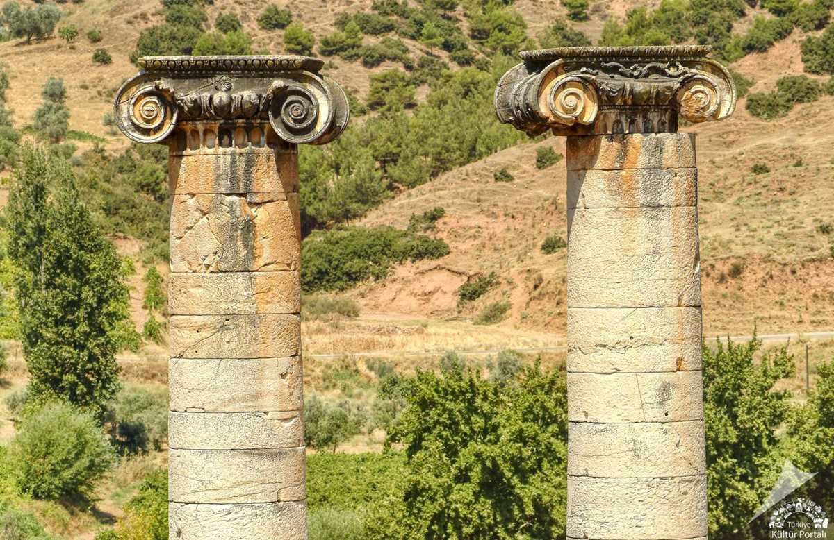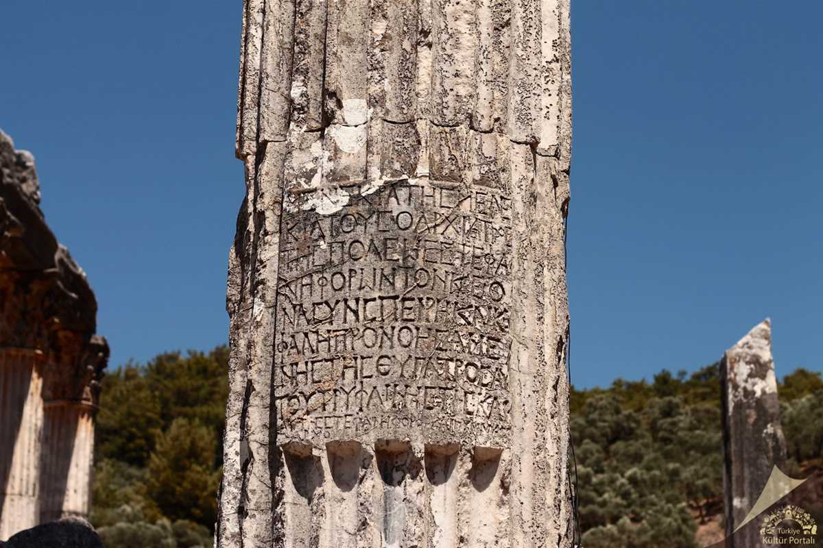 Sütunlarından birinde Kallisthenes adlı kişinin kente yaptığı parasal yardımlar hakkında bilgi veren uzun bir yazıt yer almaktadır.