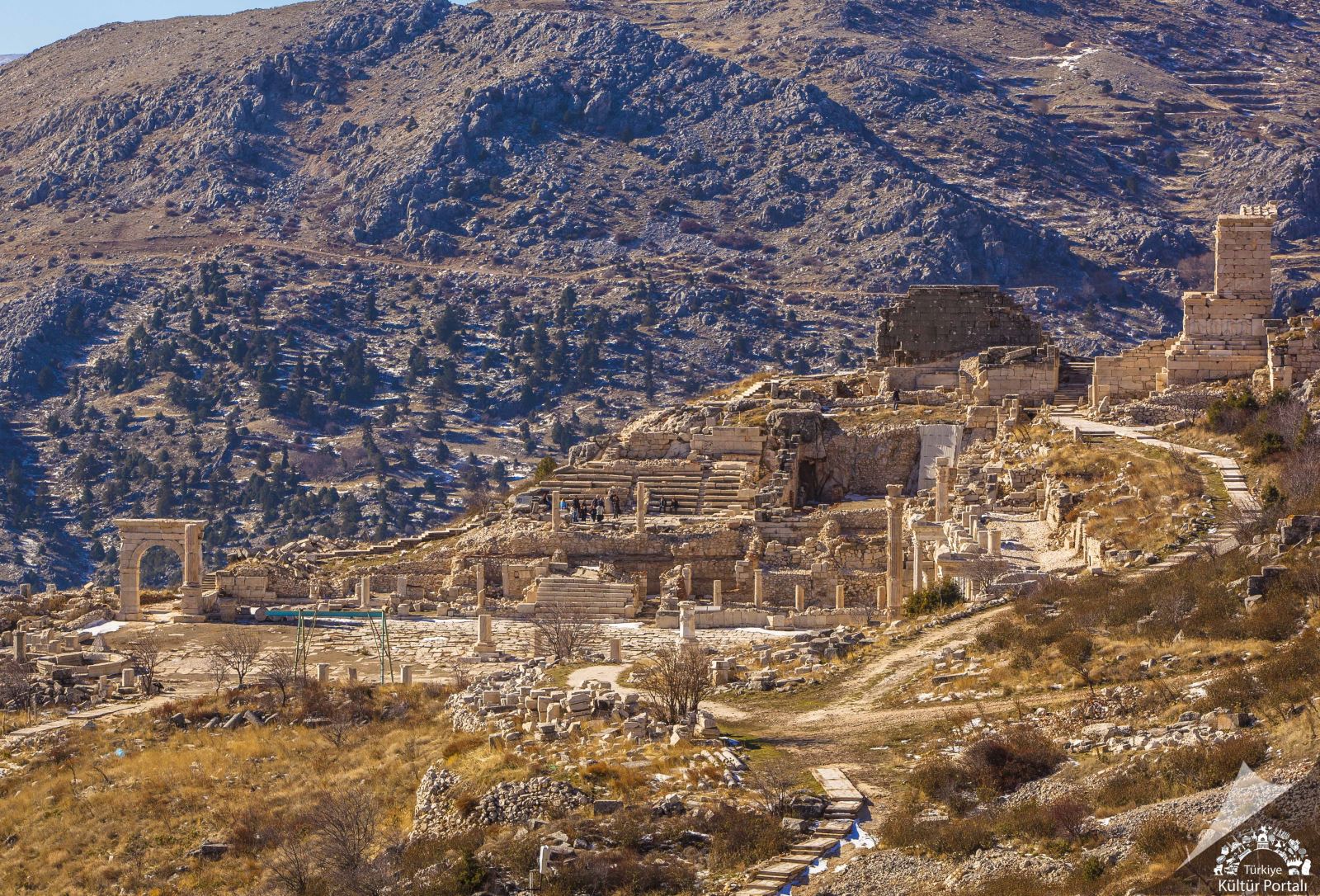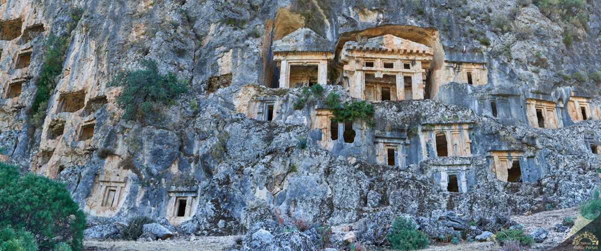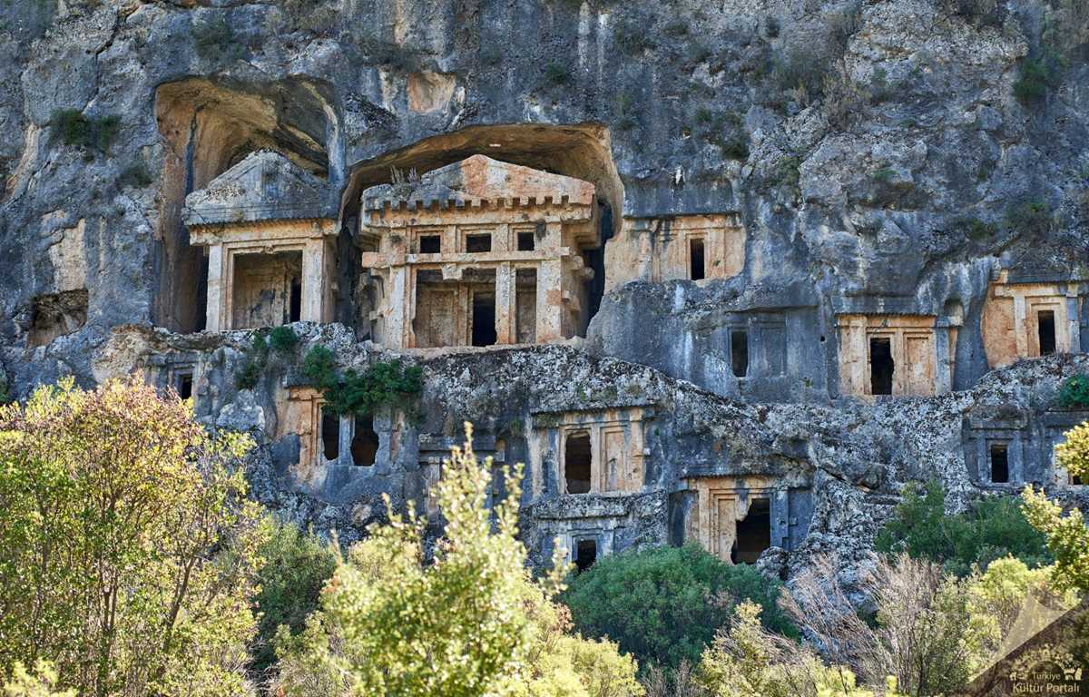 Antik kente yaklaşıldığında yukarı akropolün sarp olan doğu yamacında bir dantel gibi oyulmuş yüzlerce kaya mezarı dikkati çeker.
