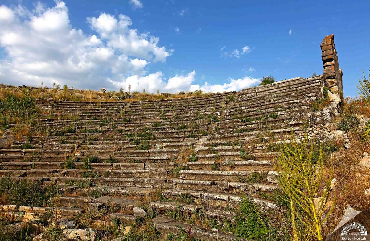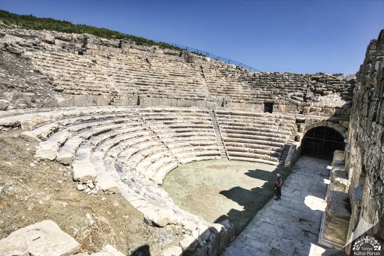 Tiyatro akropolün eteğindedir. 33 oturma sırası bulunmaktadır. Tiyatronun batı yönündeki yapı kalıntılarından biri bazilika tipi kiliseye aittir. Diğerleri Roma Hamamı ve Tapınağı’na aittir.