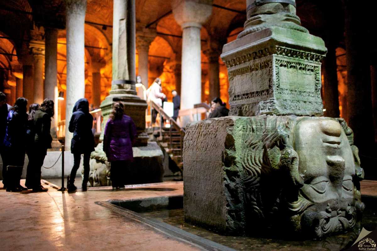 MS 542 yılında I. Justinyen tarafından “Büyük Saray”ın su ihtiyacını karşılamak üzere yaptırılan Yerebatan Sarnıcı, Arkeolojik Park içerisinde yer almaktadır. Sarnıcın içerisinde Yunan mitolojisinde kendisine bakanları taşa çevirme gücüne sahip olduğu kabul edilen Medusa başı ziyaretçilerden büyük ilgi görmektedir.