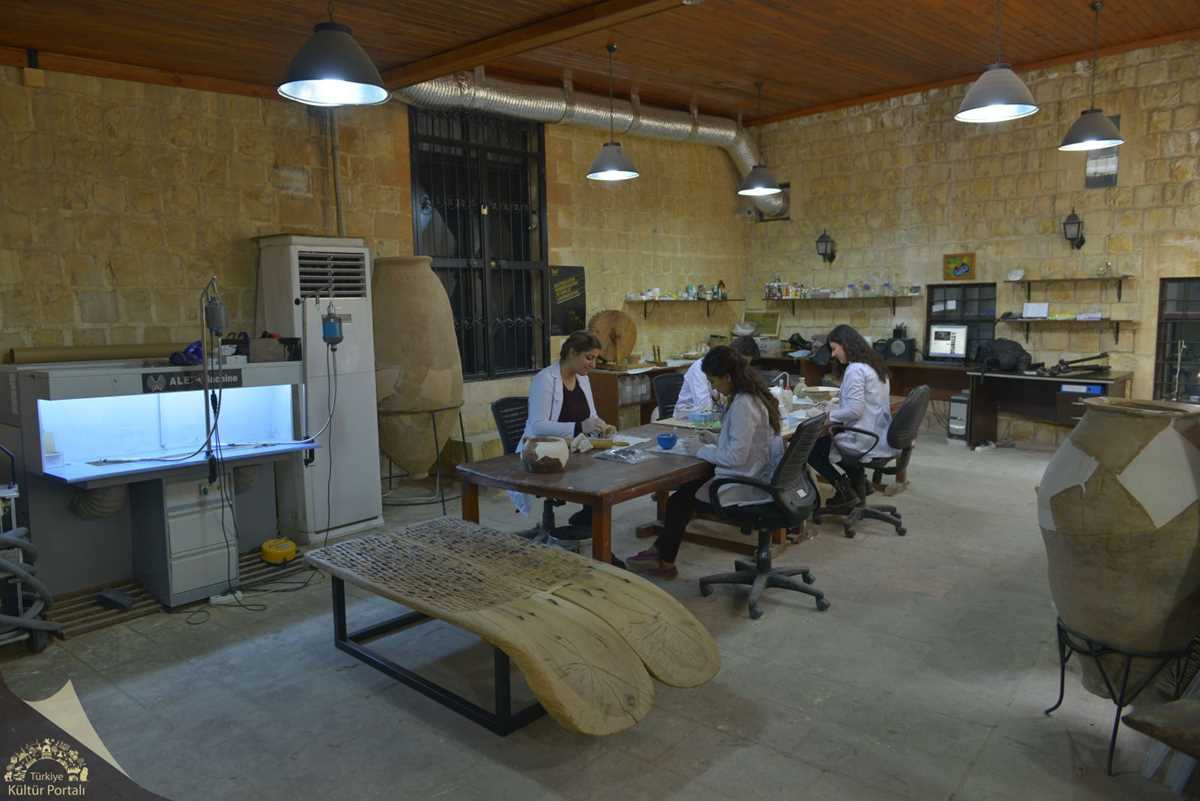 Müze binasının batısındaki mekanlar üzerinde kurulmuş olup 250 m2 alana sahiptir. Laboratuvarda gümüş, bakır, tunç, demir ve bronz gibi metal eserlerle birlikte seramik, taş, cam, mozaik, ahşap, kağıt, deri, tekstil gibi organik ve inorganik tüm taşınabilir kültür varlıklarının restorasyon ve konservasyon işlemleri yapılabilmektedir. Müze koleksiyonunda bulunan yaklaşık 40 bin eserin restorasyon ve konservasyon işlemlerinin tamamlandığı laboratuvarda, her geçen gün ilerleyen bilimsel çalışmalar, teknolojik donanım ve yeni sistemler takip edilerek çalışmalar sürdürülmektedir. Türkiye’de müze bünyesinde kurulan ilk ve tek analiz laboratuvarı olan “Mardin Müzesi Analiz Laboratuvarı’nda tüm Türkiye’den gelen kültür varlıklarına ait taş, sıva, harç, toprak, seramik gibi malzemeler hassasiyetle analiz edilmekte ve restorasyonda kullanılacak yöntem ve malzemeler belirlenerek çözüm önerileri rapor halinde sunulmaktadır.