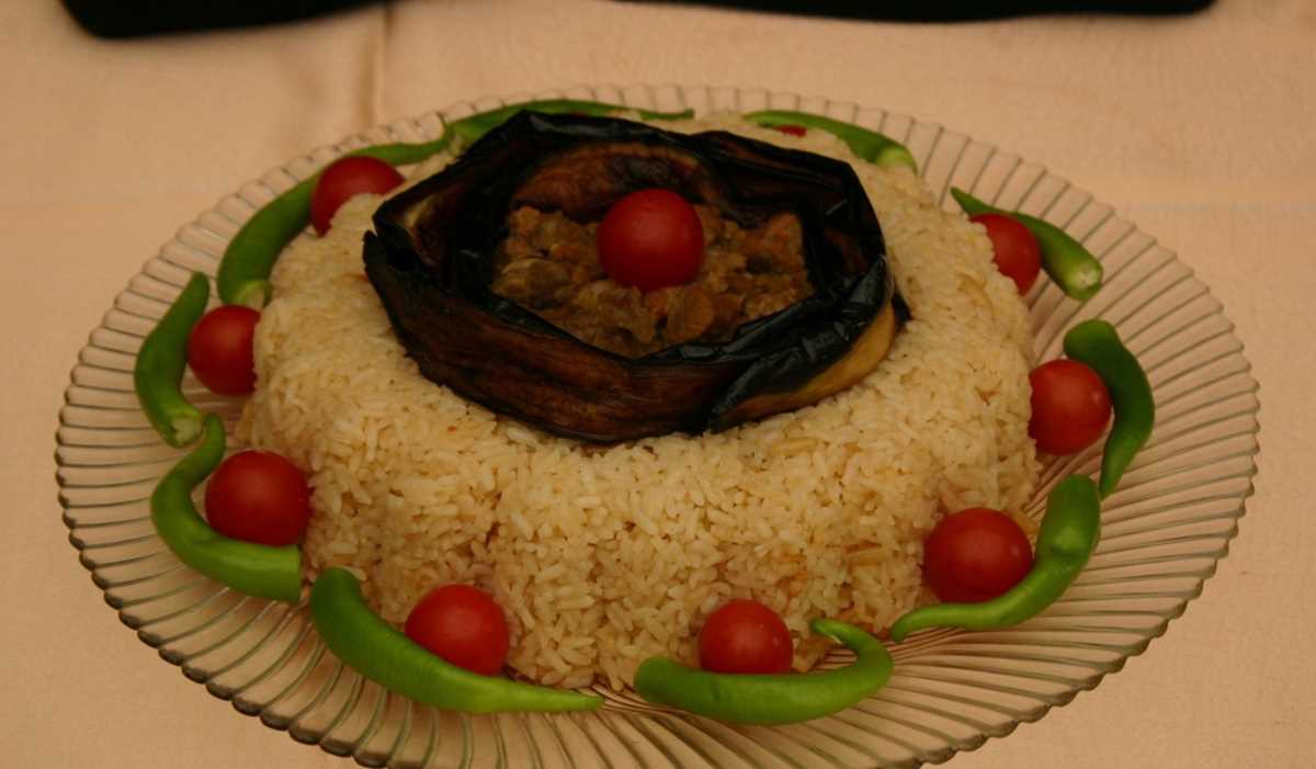 Kuzu kuşbaşı etleri yıkayıp süzülür. Orta boy tencerede orta ısılı ateşte 5-6 dakika kavrulur. Kavrulan etin üzerine sıvı yağ ve pirinç tanesi şeklinde doğranmış sarımsak eklenir 10 dakika daha kavrulur. Soğan, yeşil biber, soyulmuş domatesler küp şeklinde doğranır etin üzerine ilave edilir. 10 dakika daha pişirilir. Üzerine 1 bardak su eklenir 10 dakika daha pişirilir ve ocaktan alınır. Patlıcanlar alacalı soyulup uzunlamasına dörde bölünür. Kızan yağda yumuşayıncaya kadar kızartılıp alınır. Servis tabağına sebzeli et harcı yayılır üzeri kızarmış patlıcanlarla kapatılır.