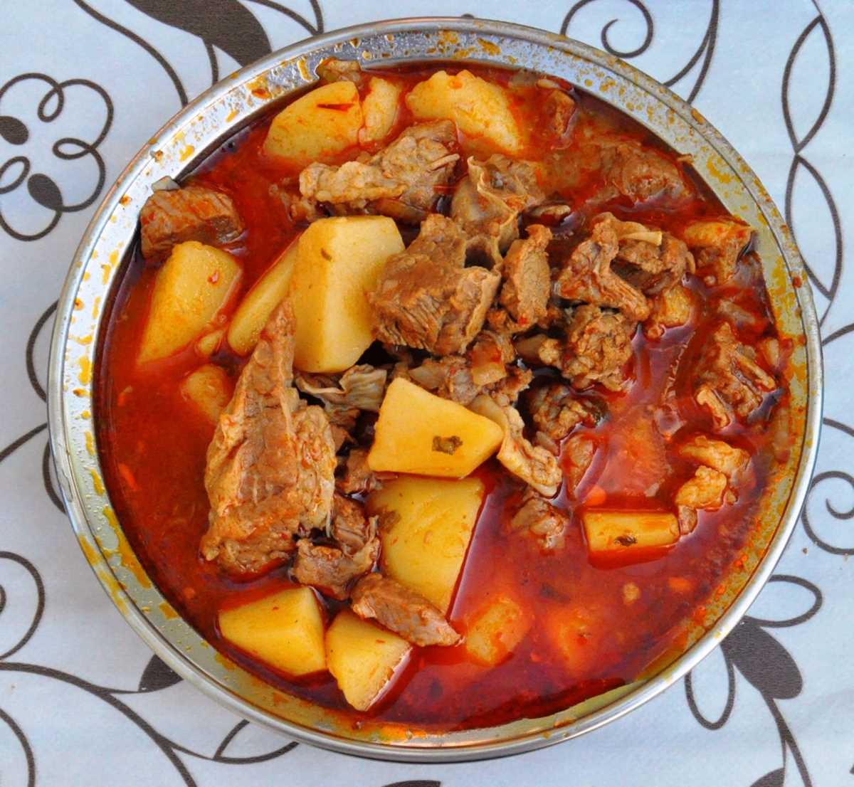 Öncelikle kuşbaşı et bir tencerede suyunu çekene kadar pişirilir. Diğer tarafta az zeytinyağı ile doğranmış soğan ve salça kavrulur. Tereyağ ilave edilerek biraz daha kavrulur. Üzerine çorbalık şekilde doğranmış patates ilave edilir. Patates biraz kavrulduktan sonra üzerine diğer tarafta pişirdiğimiz et ve kaynar su konularak pişirmeye bırakılır. Yemeğin pişmesine yakın, doğranmış sarımsaklar ilave edilir. Tuz, karabiber katılıp yemeğin altı kapatılır.