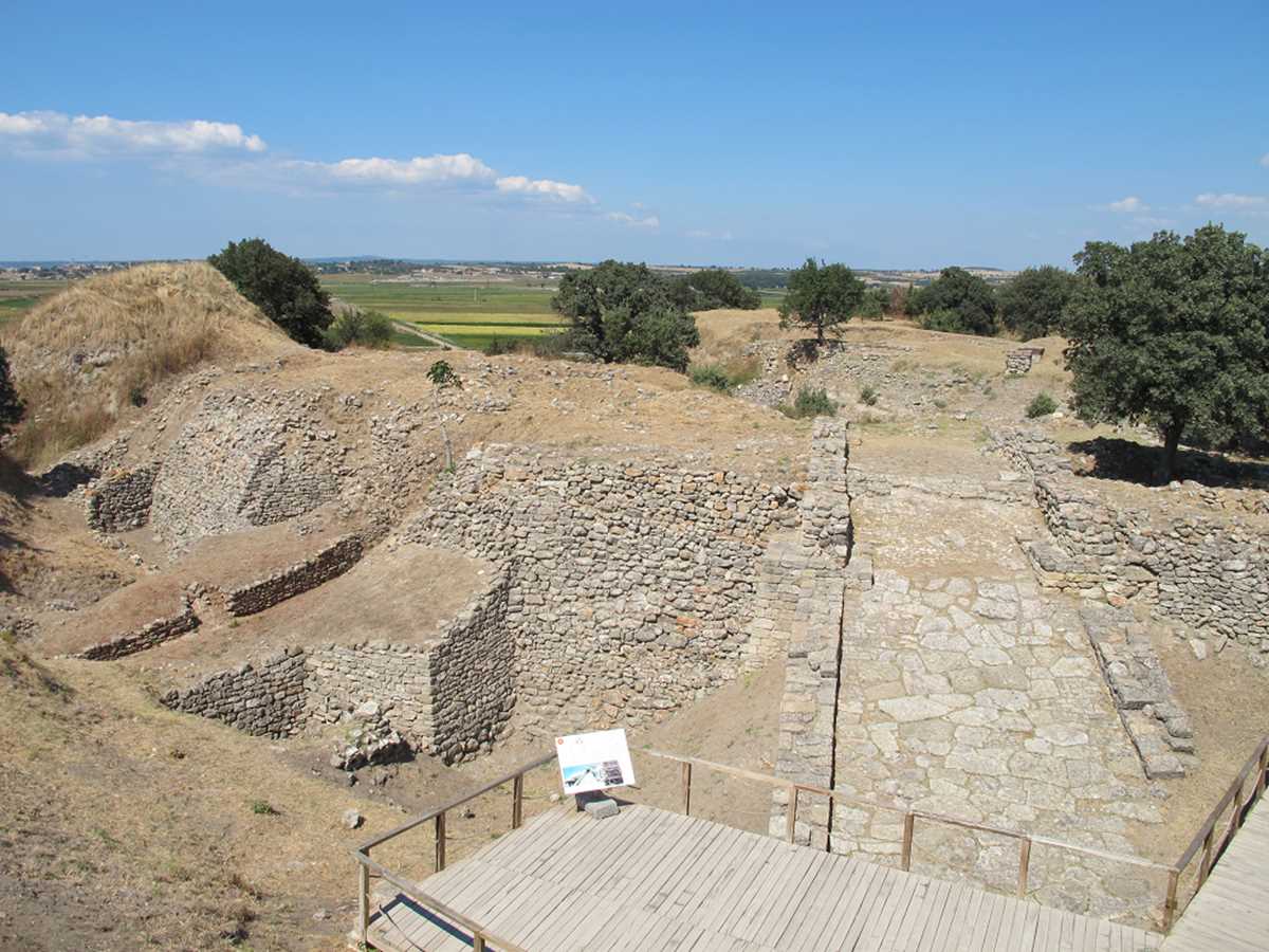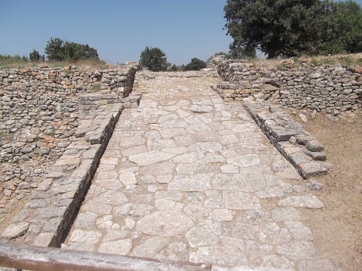 Buradan Troya II kalesinin kısmen restore edilmiş rampası ile savunma duvarını görmektesiniz.