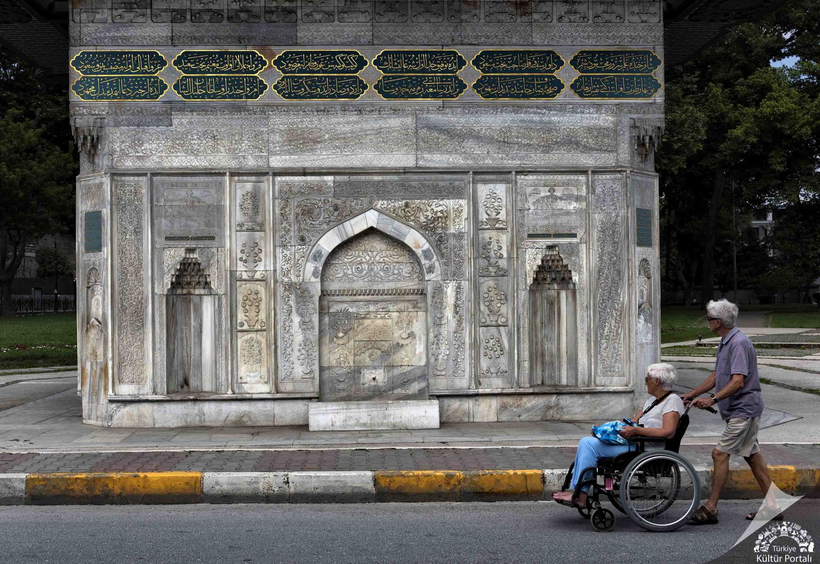 Osmanlı dönemi Türk sanatının çeşme mimarisinde meydana getirdiği bir şaheser olan bu âbidevî çeşme, Sultan III. Ahmed tarafından yaptırılmıştır. Kitâbesinde belirtildiğine göre 1728-29 yılında inşa edilmiş olup on dört kıtalık uzun tarih manzumesi Seyyid Vehbî’nindir. Ta‘lik hatla yazılan bu uzun kaside her cephede çeşmelerin üzerine ve sebillerin yukarılarına işlenmiştir.
