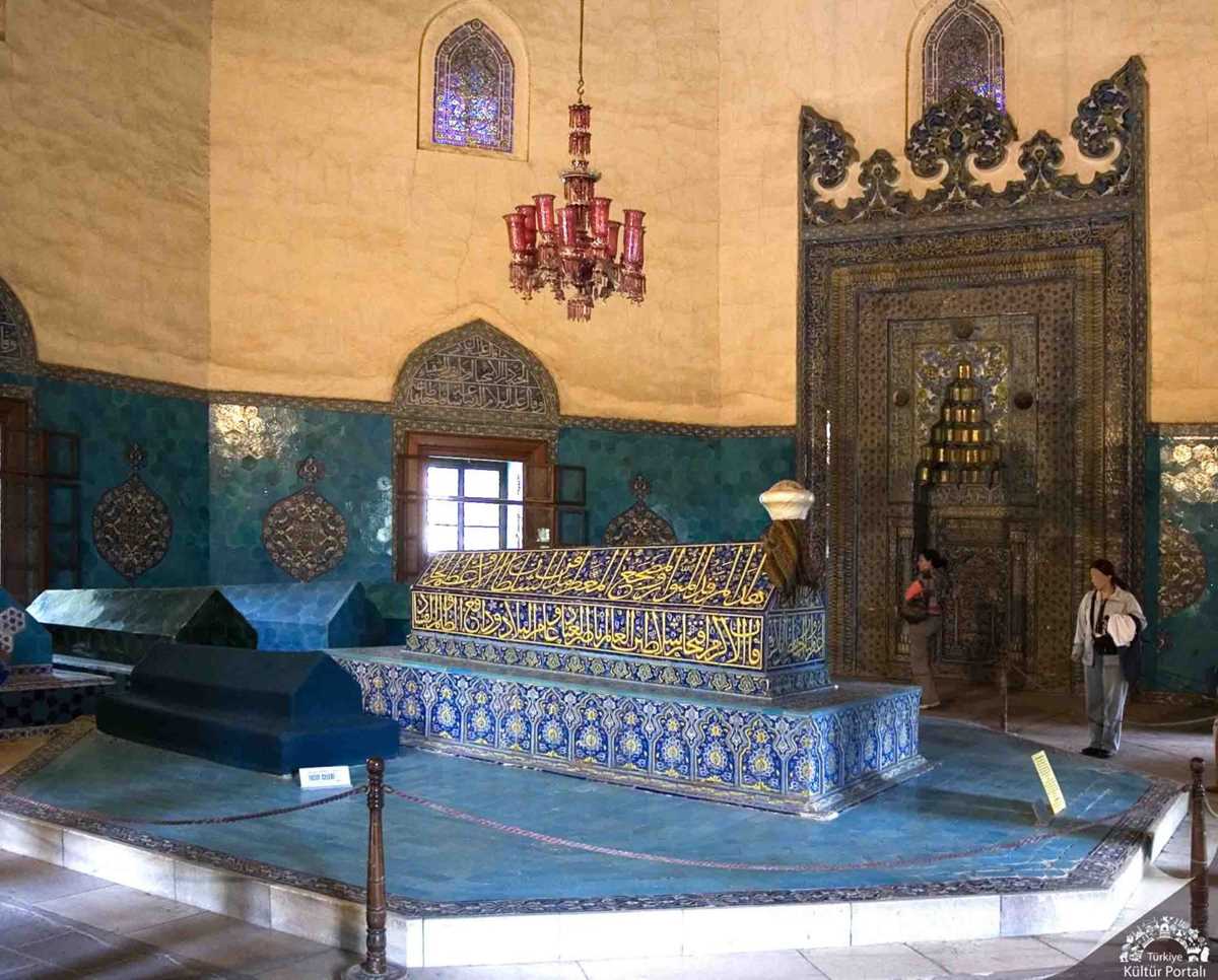 Adını dış cephesinin yeşile bakan çinilerlerinden almış olan sekizgen yapılı türbede, Çelebi Sultan Mehmet’in çiniden yapılmış sandukası bulunmaktadır. Türbede, kızları, oğulları ve Daya Hatun’un sandukaları da yer almaktadır.