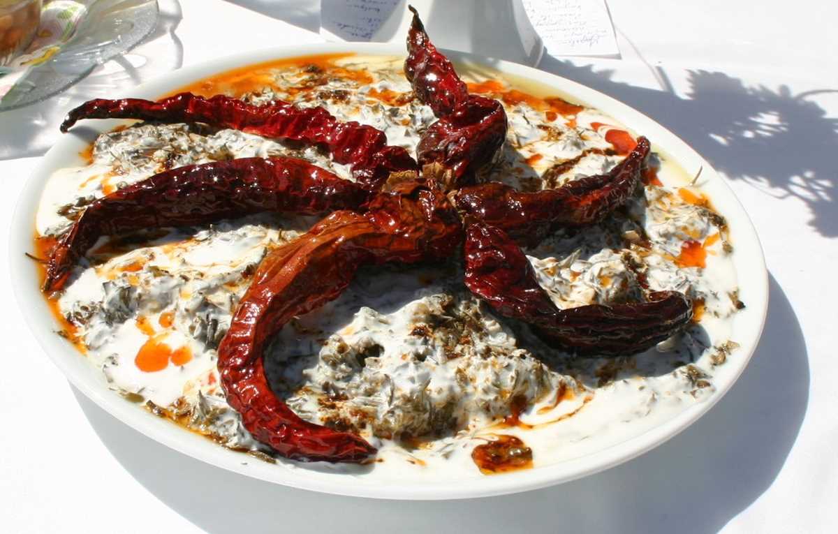 Meneviş ve asma yaprağı ayrı ayrı haşlanır, suları süzülür ve doğranır. Pırasa ve dereotu ince ince doğranır, tereyağında kavrulur. Üzerine bulgur eklenip, kavurmaya devam edilir. Daha sonra meneviş ve asma yaprağı da eklenip biraz daha kavrulur. Kavrulan malzemenin üzerine 3 su bardağı su ilave edilir ve kısık ateşte pişirilir. Soğuduktan sonra servis tabağına alınır. Üzerine sarımsaklı yoğurt dökülür.Ayrı bir tavada tereyağı eritilerek, içine pul biber konur ve kızartılarak servis tabağına alınan yemeğin üzerine gezdirilir.sıvı yağda kurutulmuş biber kızartılarak üzeri süslenir. Soğuk olarak servis yapılır.