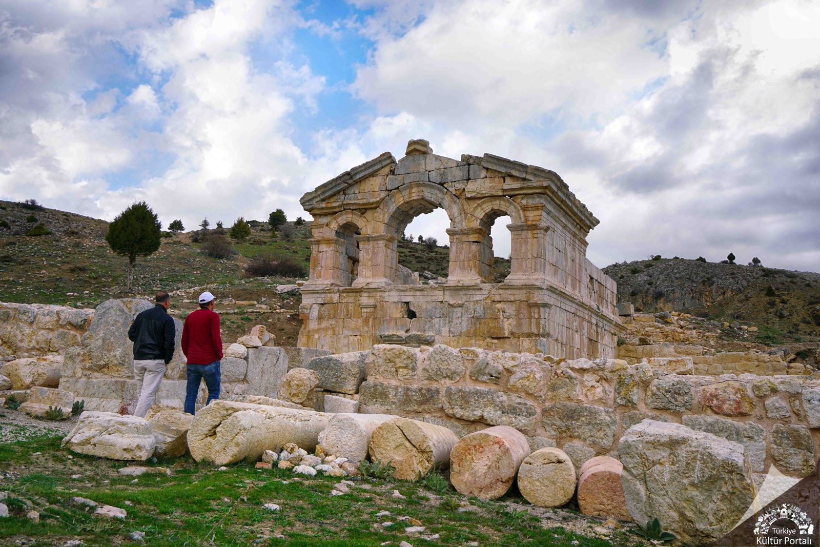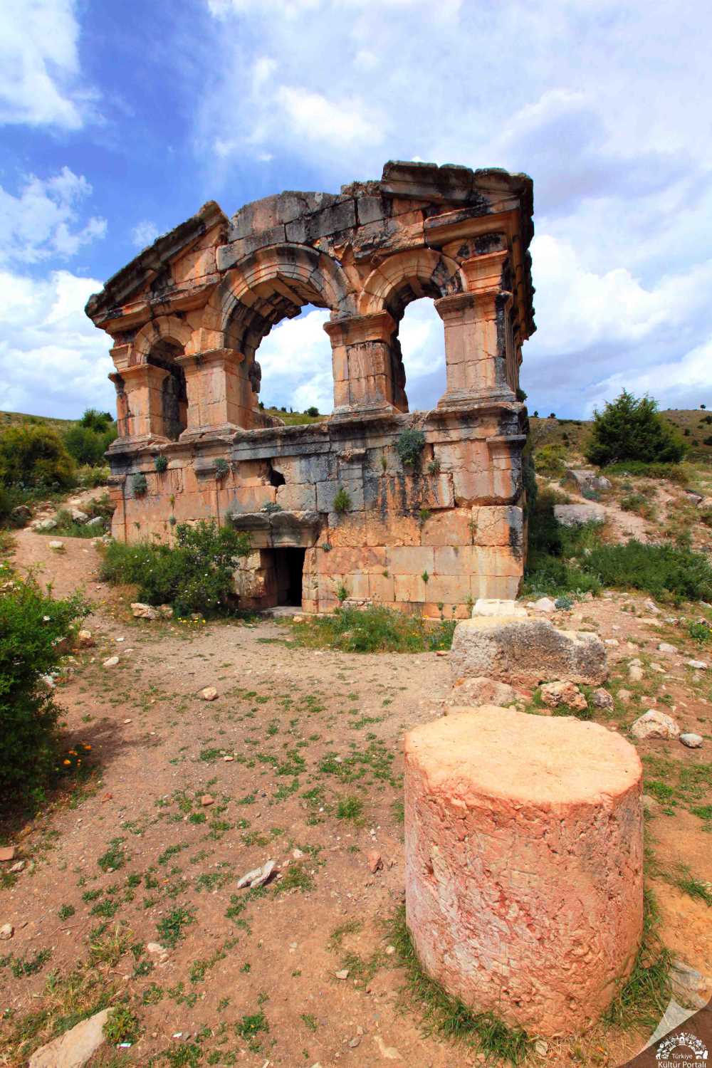 Romalılar zamanında Hierapolis adıyla anılan bu yerde başka bina kalıntıları, rölyefler ve kitabeler ile sütun, sütun başlığı, arşitrav ve kemer gibi çeşit çeşit mimari öğeler görülmektedir.