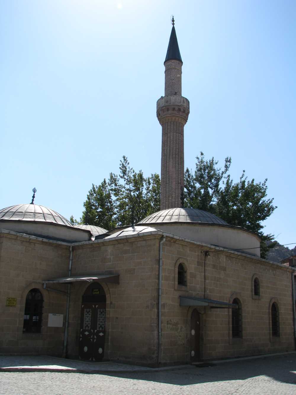 Sokakların birleştiği alanda olup üç yanı duvarla çevrili bahçeliktir. Güney bahçe duvarına bitişik evler vardır. Ana girişi doğudan olup ayrıca batı ve kuzeyde de kapısı vardır ve her üç kapıda caddeye açılır. İki ayrı yapı birleşmiş olarak görülmektedir. Minaresi batıda ve iki kubbe arasında kalmıştır. Düzenli ve düzensiz kesme taş duvarlı, kapı ve penceresi çıkıntılı taş sögeli, çokgen kasnağa oturmuş kubbeleri kurşun kaplamalı ve alemlidir. |
