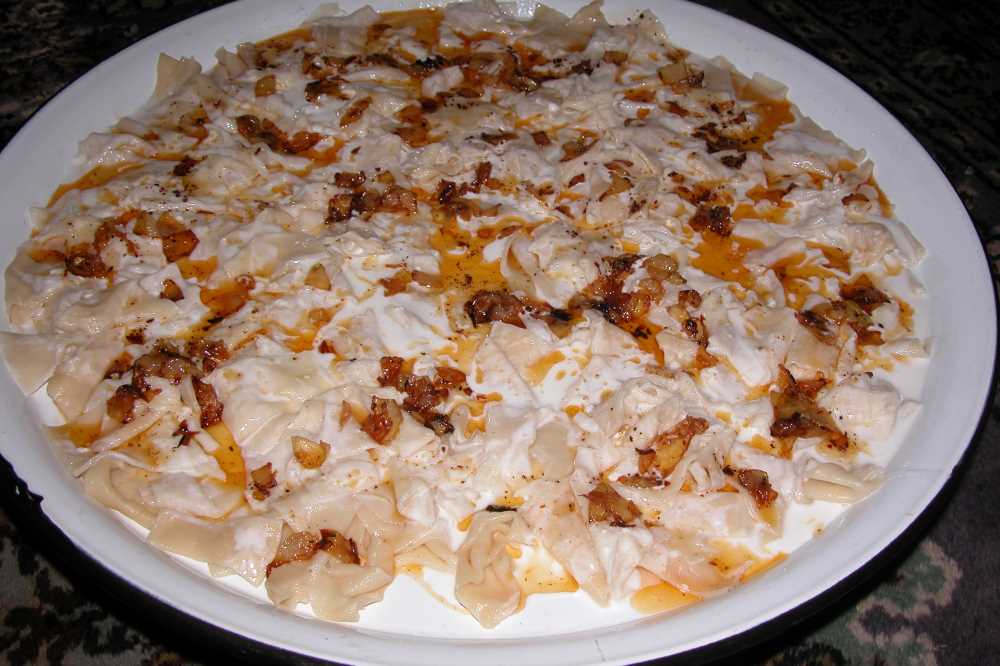 Buğday unundan ele yapışmayacak bir kıvamda hazırlanan hamur bir süre dinlendirilir, yufka şeklinde ince olarak açılır ve kareler şeklinde kesilir. Kaynar suda haşlandıktan sonra süzülür ve bir tepsiye çekilir. Üzerine sarımsaklı yoğurt veya hengel sosu dediğimiz yöremize has kurut isimli bir malzeme ezilerek dökülür yine içinde küçük soğan parçacıkları kavrulmuş tereyağı dökülerek servis yapılır. Bekletilmeden ve soğutulmadan yenmesi gerekir.